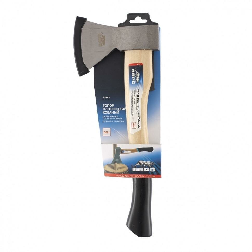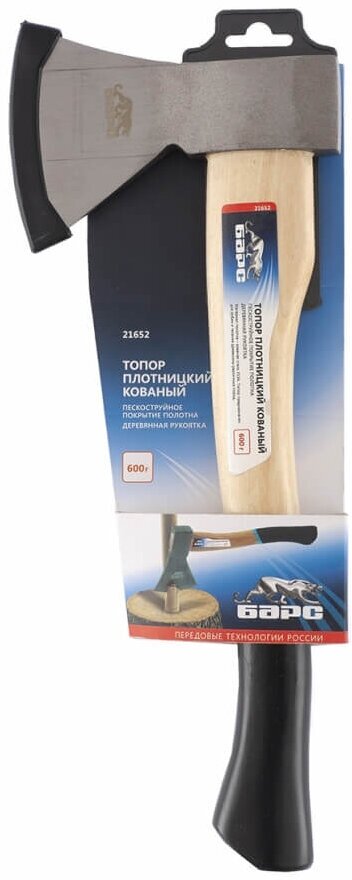 Топор барс 21652 плотницкий кованый деревянная рукоятка 600гр. пескоструйное покрытие полотна