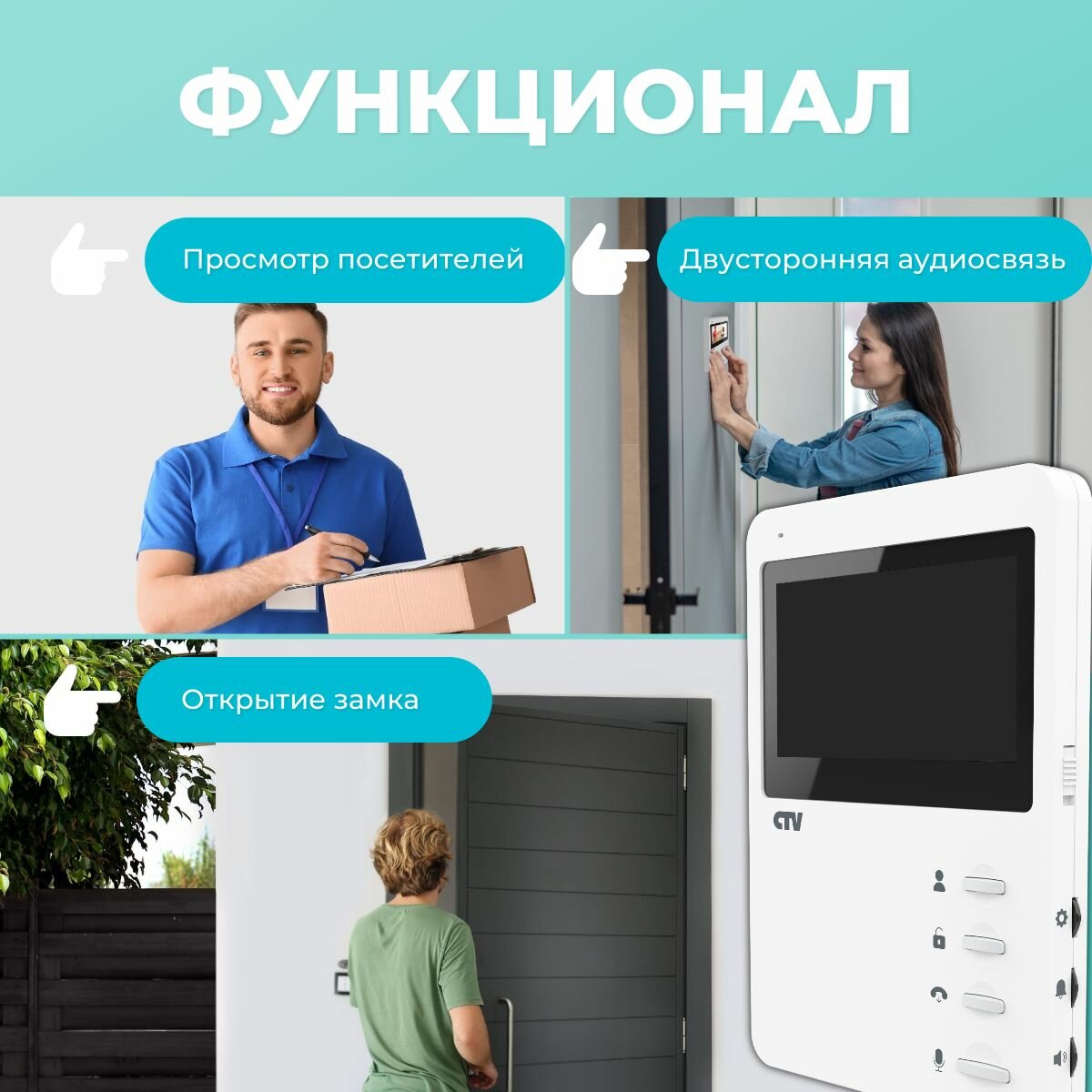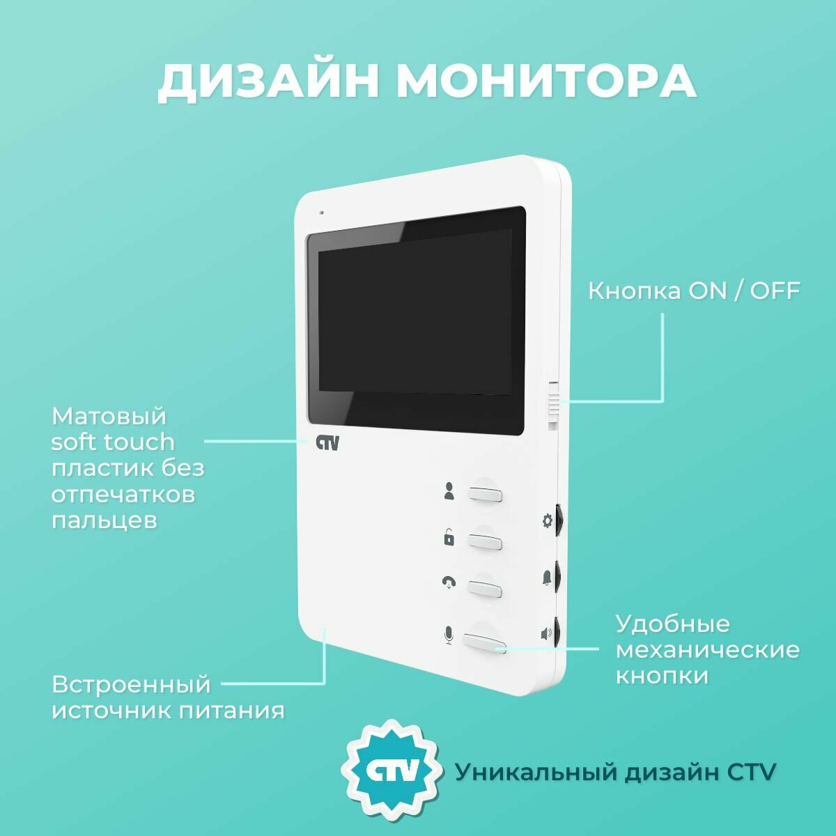 CTV-DP1400N Комплект видеодомофона (белый, серебро) TFT дисплей 4" 480x272, угол обзора 80 градусов интересное: