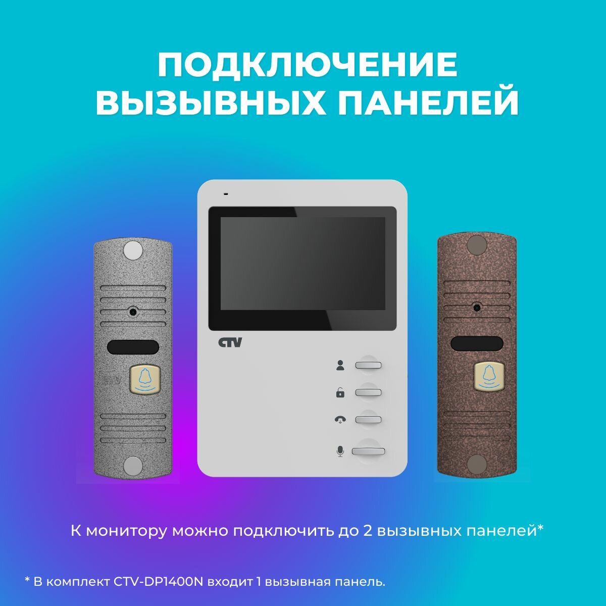 Купить CTV-DP1400N Комплект видеодомофона (белый, серебро) TFT дисплей 4" 480x272, угол обзора 80 градусов