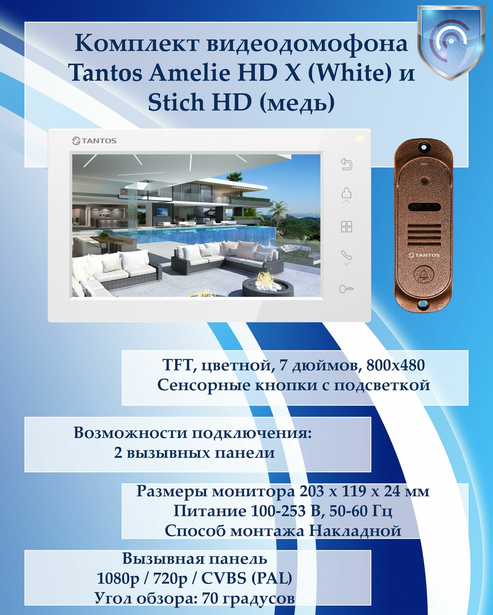 Купить Комплект видеодомофона Tantos Amelie HD X (White) и Stich HD (медь)