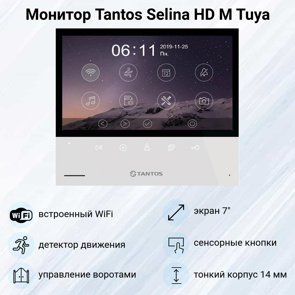 Видеодомофон Tantos Selina HD M Tuya WiFi комплект с вызывной панелью iPanel 2 HD (черная) для квартиры или дома интересное: