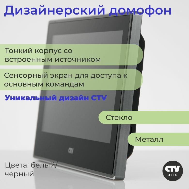 CTV-M4704AHD (Белый) Видеодомофон для квартиры, поддержка Full HD, Сенсорный IPS дисплей 7" 1024x600, с записью видео по детекции движения, автоответчик, HOOK