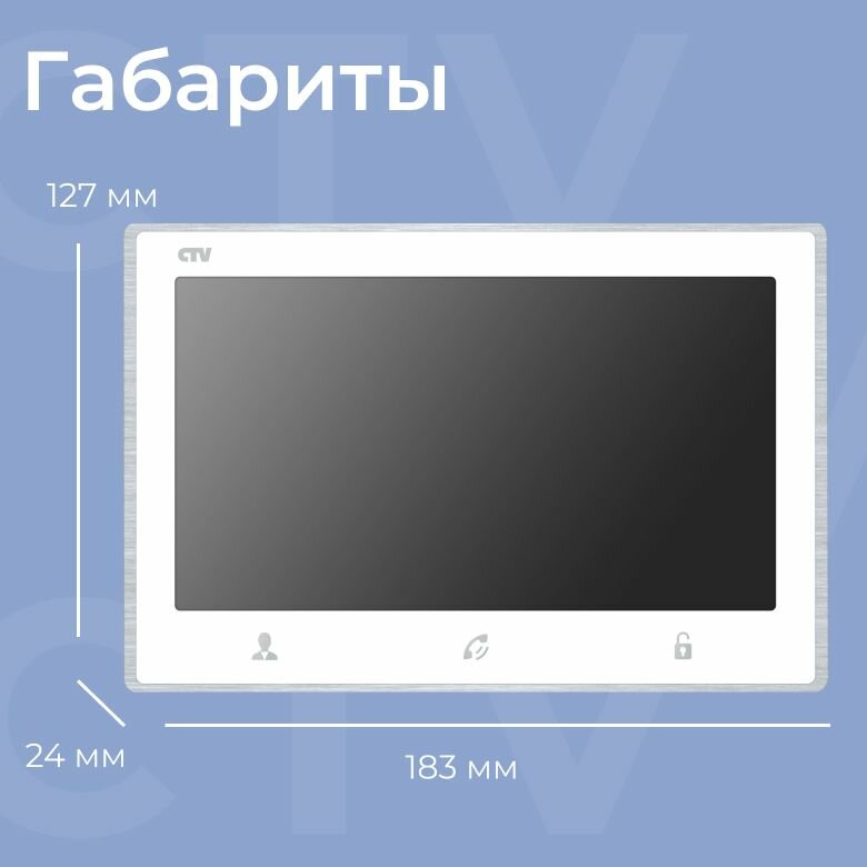 CTV-M3712 Astra (Белый) Видеодомофон для квартиры, IPS дисплей 7" 1024x600, поддержка панелей Full HD, часы, выход HOOK