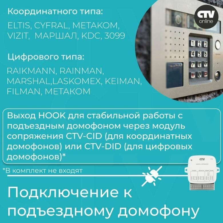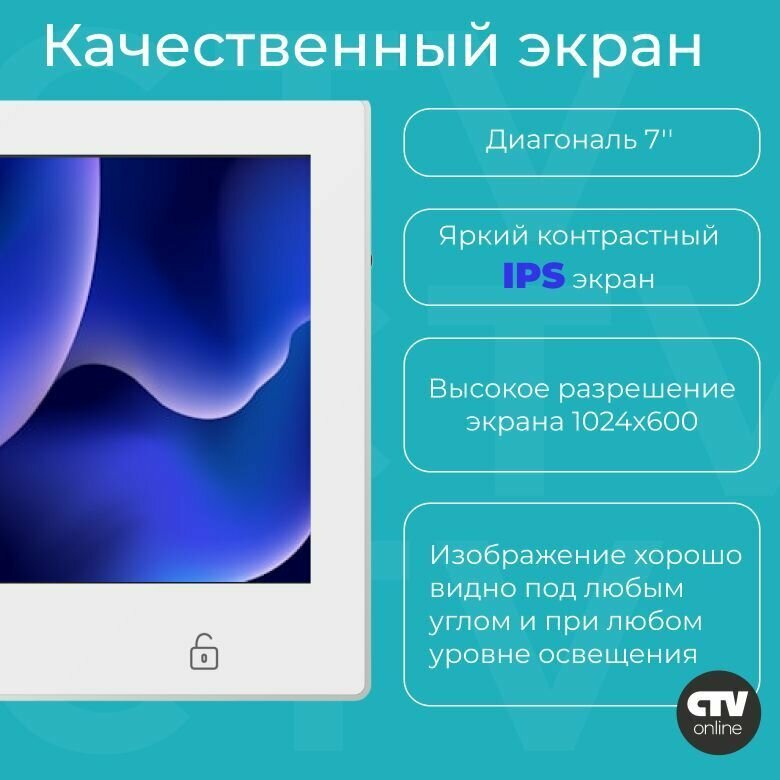 СохранитьCTV-M3712 Astra (Белый) Видеодомофон для квартиры, IPS дисплей 7" 1024x600, поддержка панелей Full HD, часы, выход HOOK интересное: