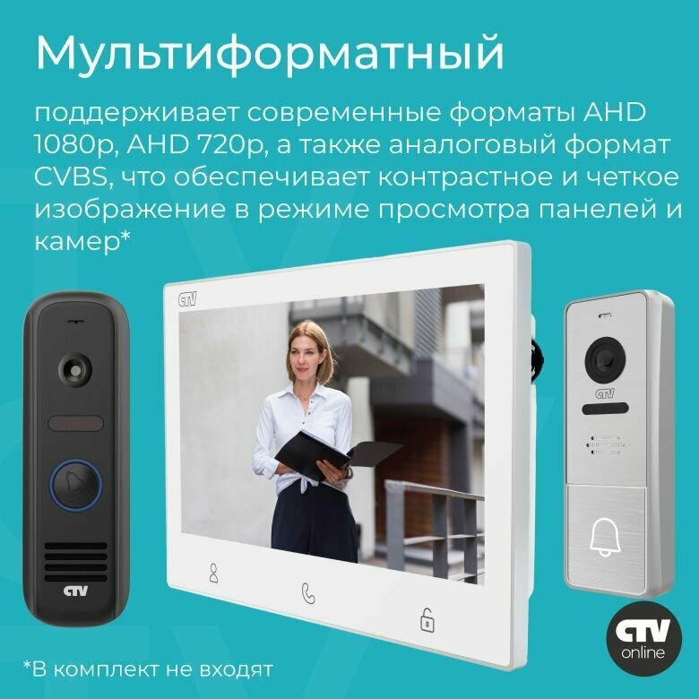 CTV-M4703AHD (Белый) Видеодомофон для квартиры, поддержка Full HD, IPS дисплей 7" 1024x600, с записью видео по детекции движения, автоответчик, HOOK