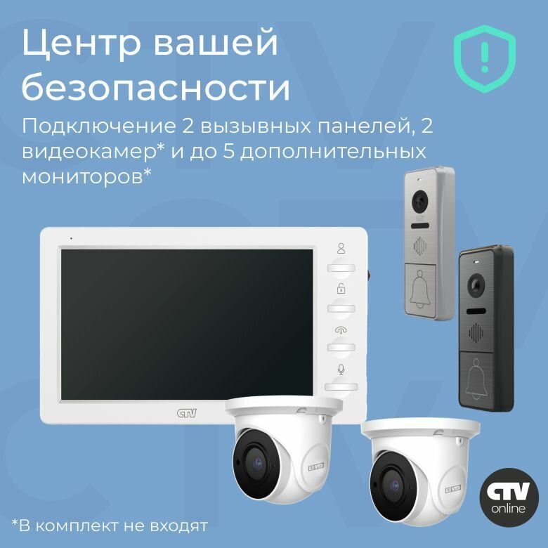CTV-M3712 Astra (Белый) Видеодомофон для квартиры, IPS дисплей 7" 1024x600, поддержка панелей Full HD, часы, выход HOOK