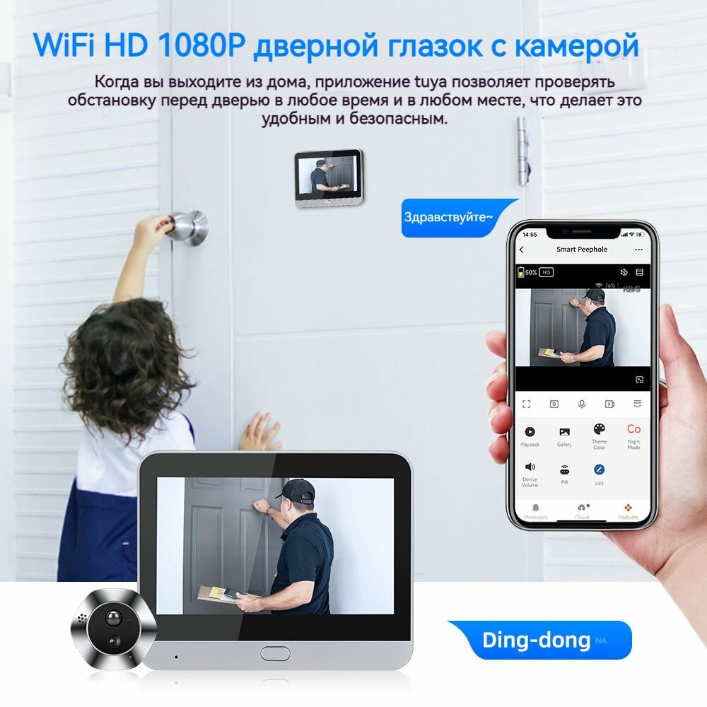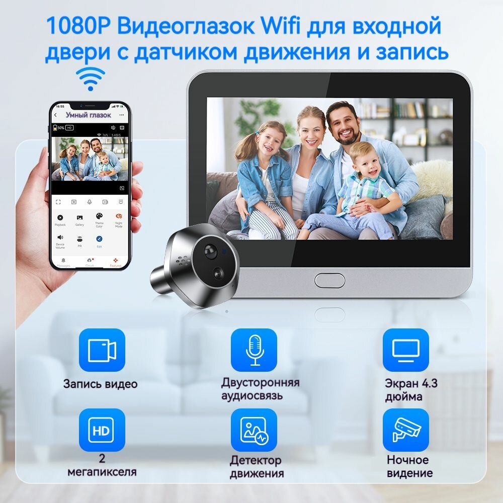 Умный Видеодомофон ED-300P | 4.3" WiFi-экран + 1080P HD | Ночное видение 120°/PIR-датчик интересное: