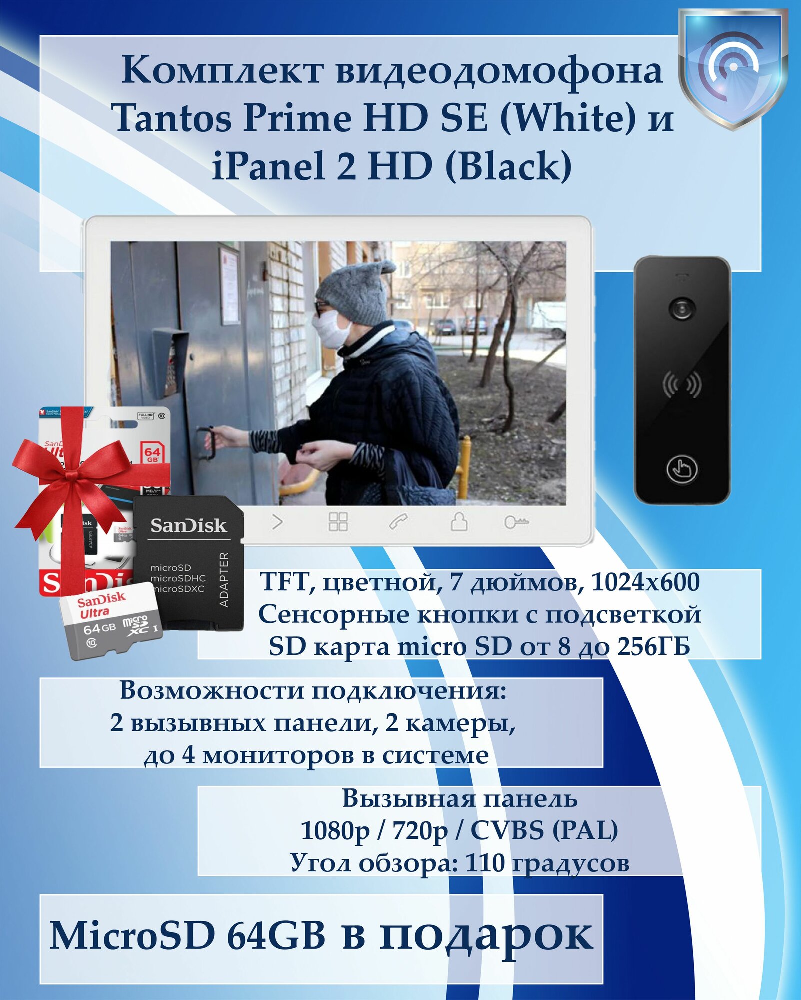 Купить Комплект видеодомофона Tantos Prime HD SE (White) и iPanel 2 HD (Black)