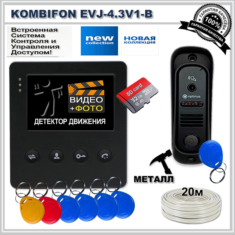 Купить Видеодомофон KOMBIFON EVJ-4.3V1-B с кабелем. Комплект