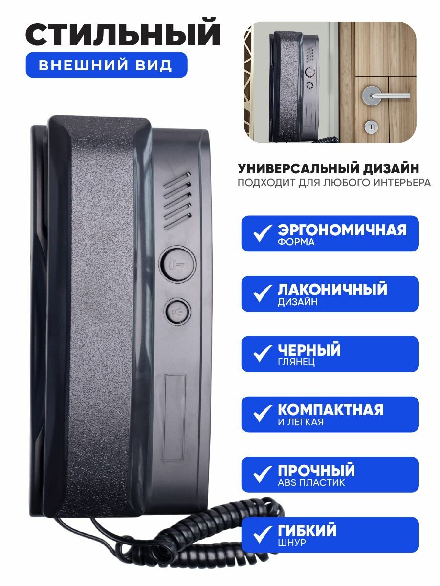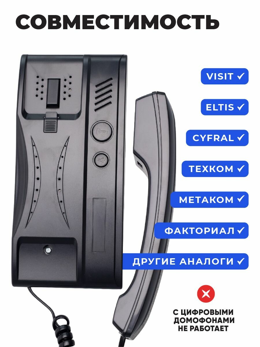 Трубка домофона для квартиры черная с отключением звука, универсальная для Визит (VIZIT), Метаком (Metacom), Цифрал (Cyfral), Элтис (Eltis) интересное: