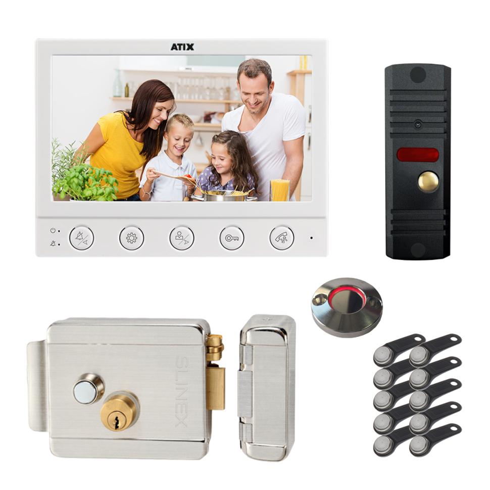 Видеодомофон для дома с замком EL и ключами TM Atix 7" комплект на калитку интересное: