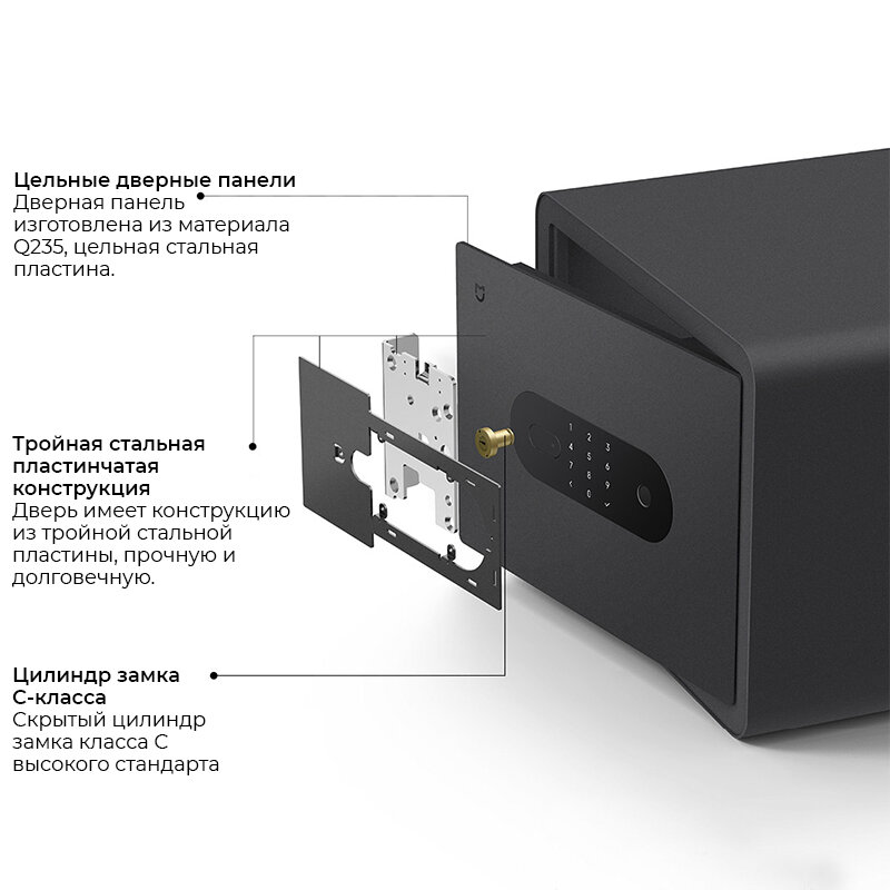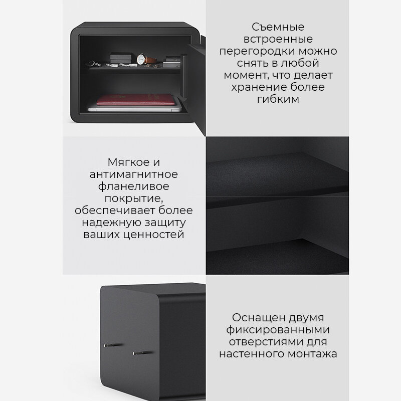 Умный электронный сейф с датчиком отпечатка пальца Smart Safe Deposit Box Dark Grey (BGX-5X1-303) интересное: