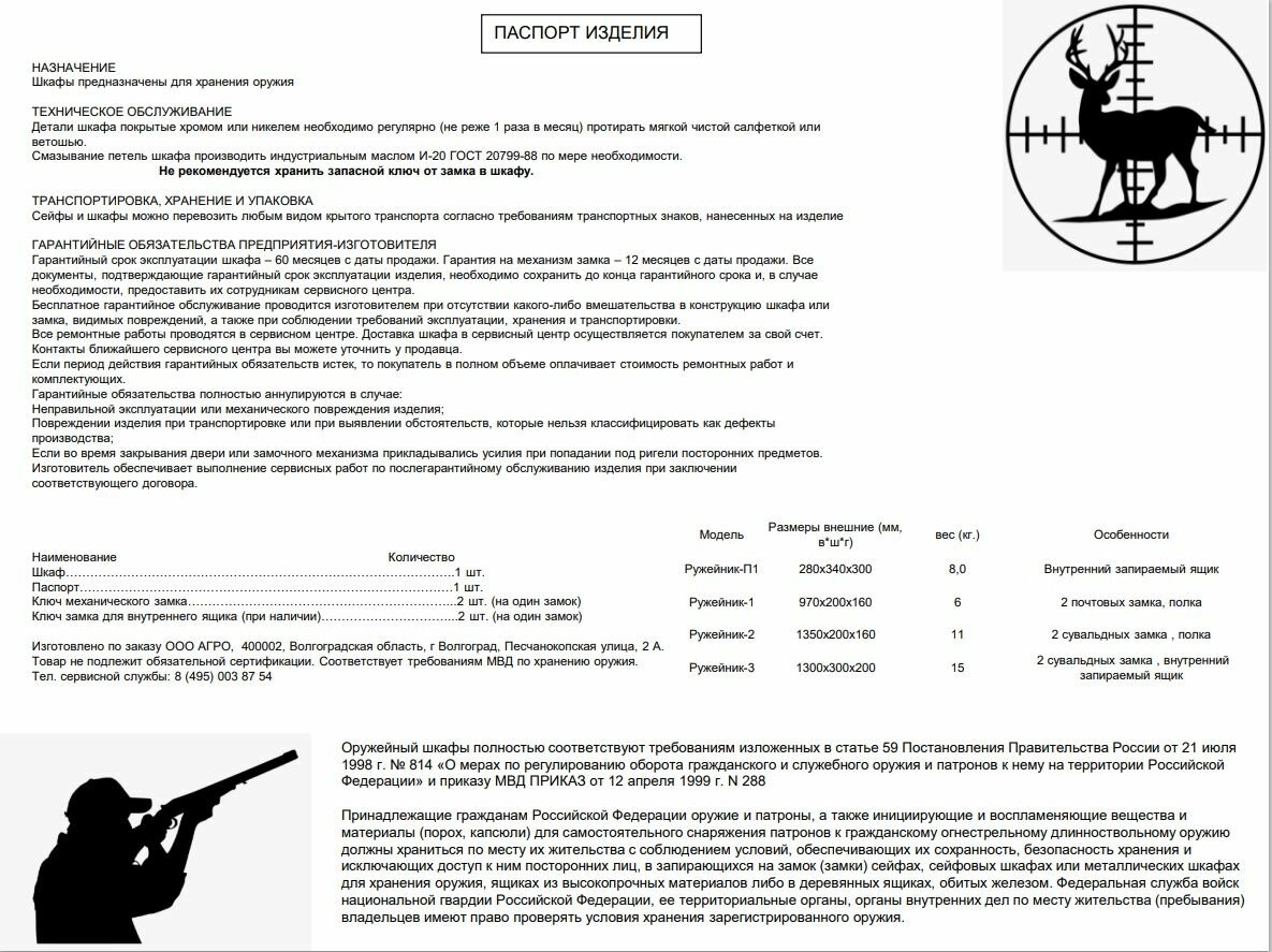 Сейф для оружия Ружейник 1. Соответствует требованию МВД. ВхШхГ, мм 970*200*160 интересное: