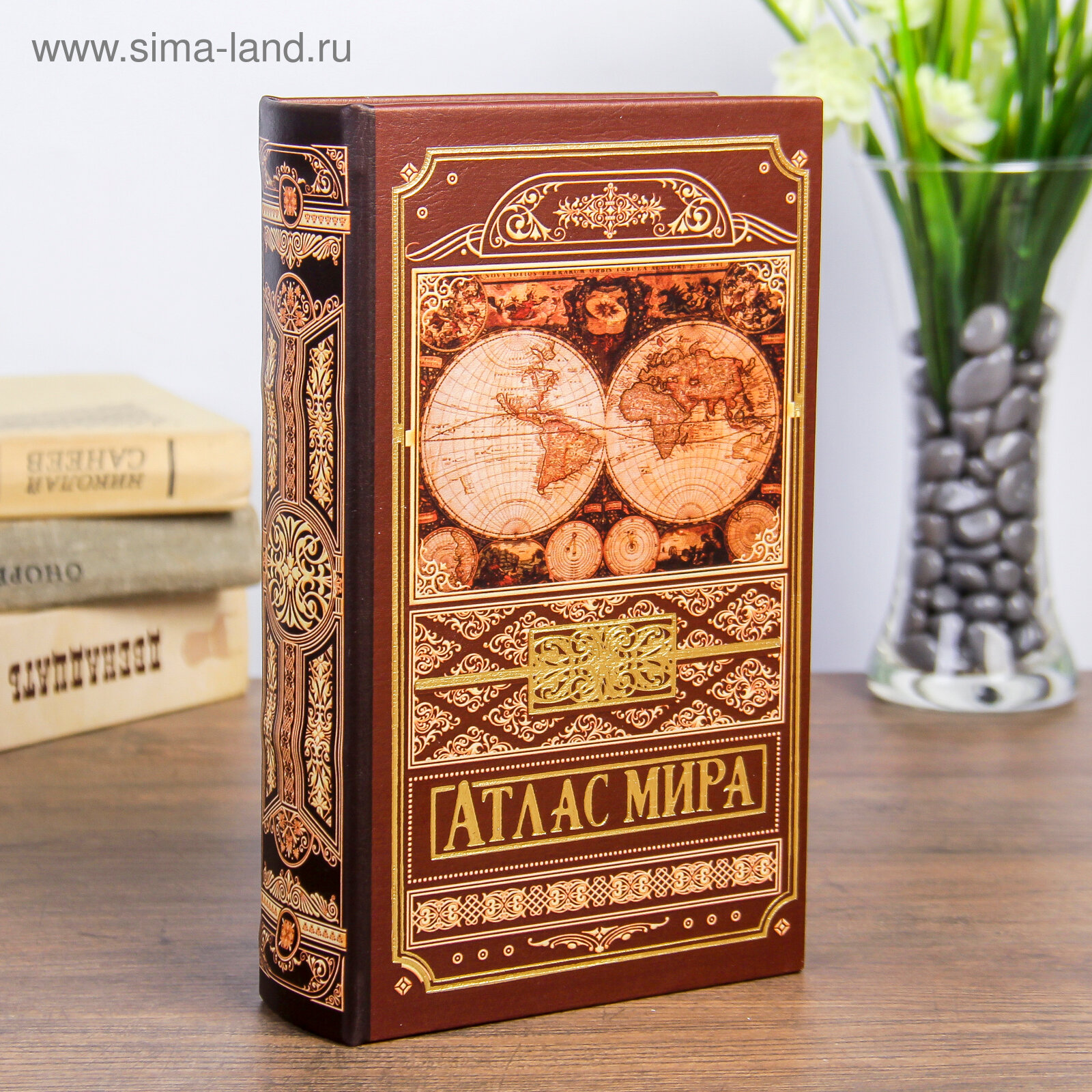 Купить 4 шт. Шкатулка книга-сейф «Атлас Мира», дерево, искусственная кожа, 21×13×5 см