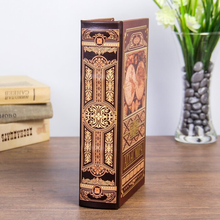 4 шт. Шкатулка книга-сейф «Атлас Мира», дерево, искусственная кожа, 21×13×5 см интересное: