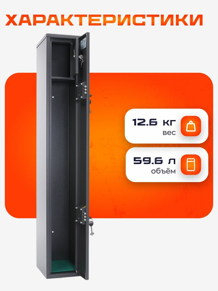 Сейф оружейный Чирок, металлический, для ружья охотничьего, на 2 ствола, два ключевых замка