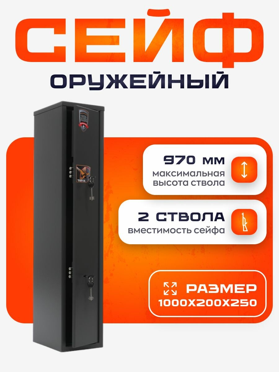 Сейф оружейный для ружья охотничьего Чирок на 2 ствола, два ключевых замка