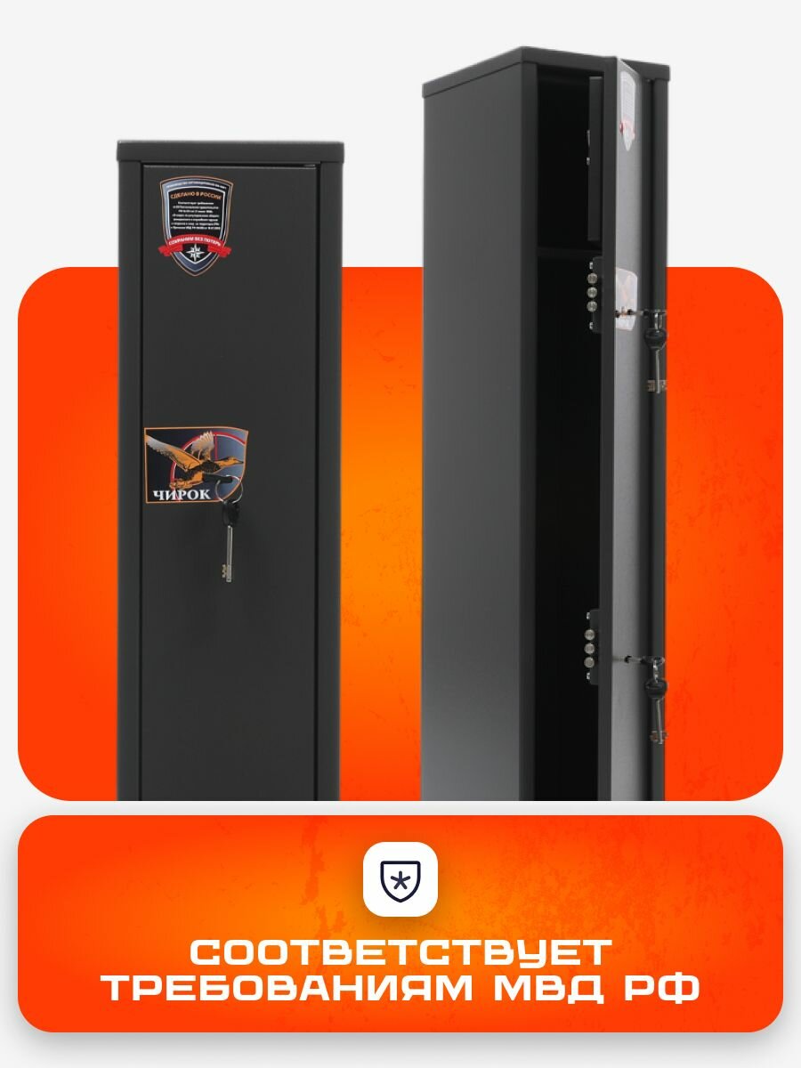 Сейф оружейный Чирок, металлический, на 4 ствола, с двумя ключевыми замками