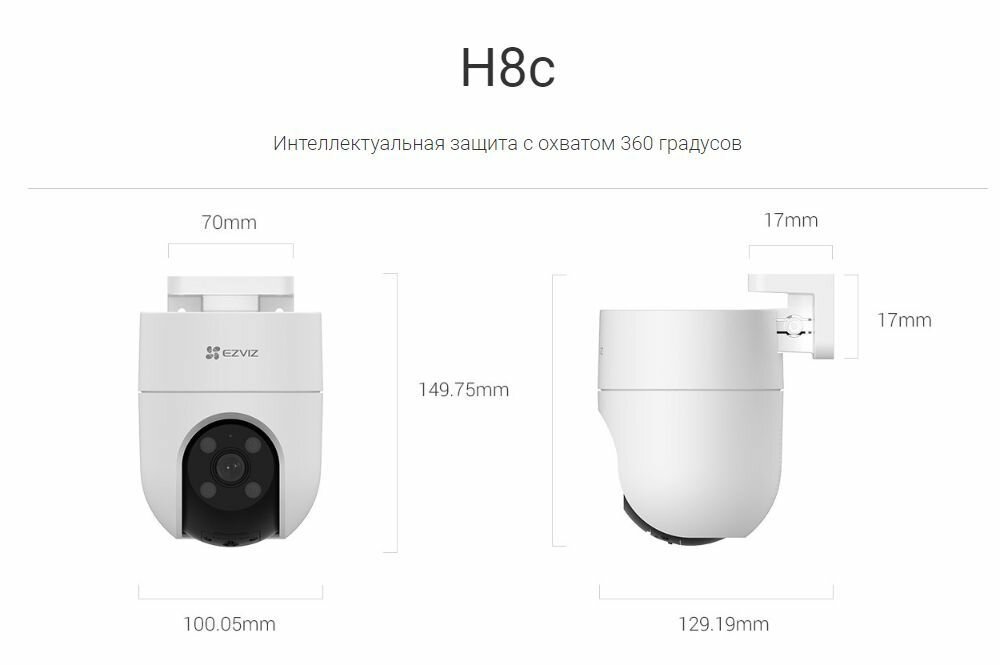 Уличная поворотная IP камера с Wi-Fi EZVIZ CS-H8c 2K+ (4MP,4mm) интересное: