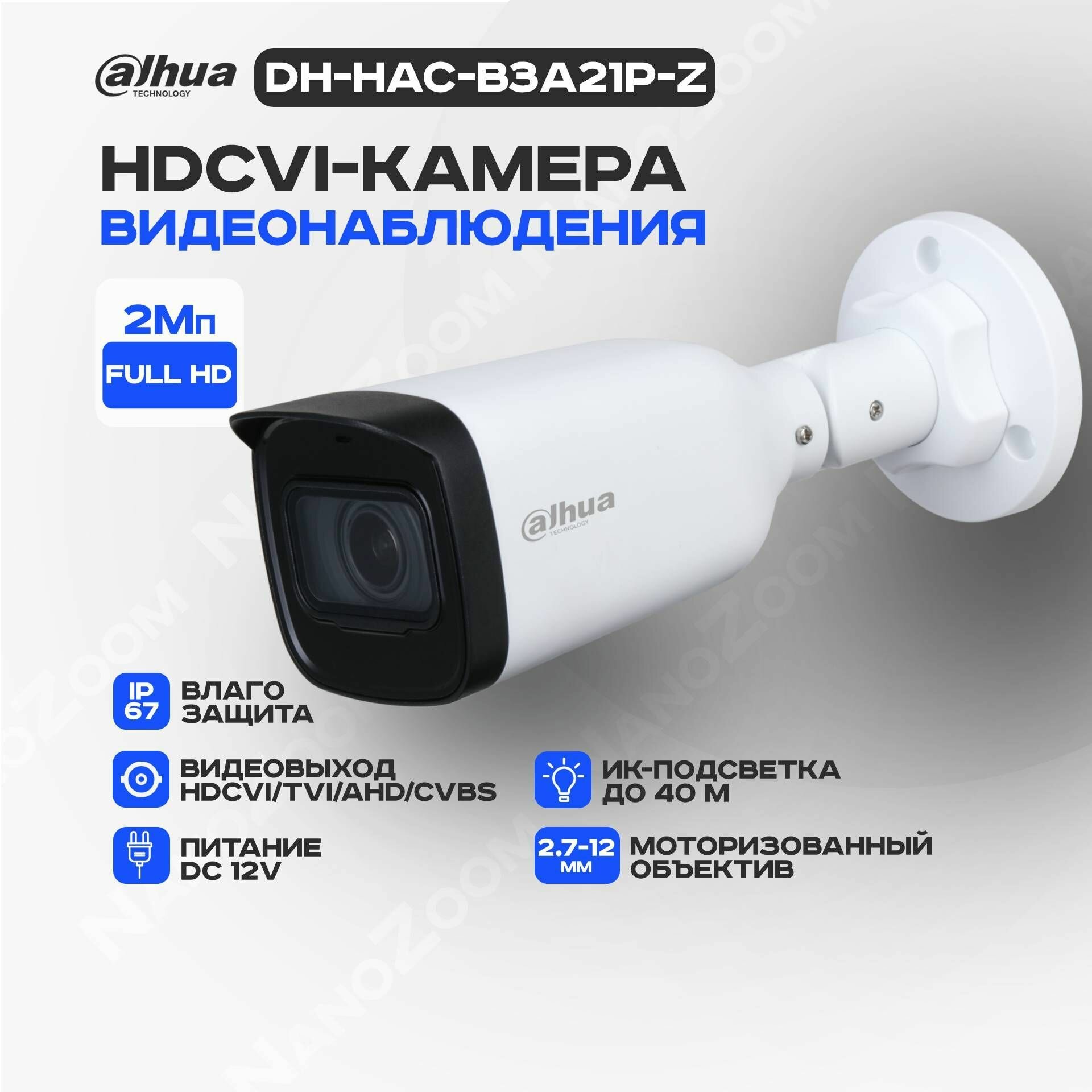 Dahua DH-HAC-B3A21P-Z 2Mп 2,7-12 мм камера видеонаблюдения HDCVI уличная, аналоговая цилиндрическая HDCVI-видеокамера с ИК подсветкой 1920x1080 Full HD, CMOS 1/2.7" интересное: