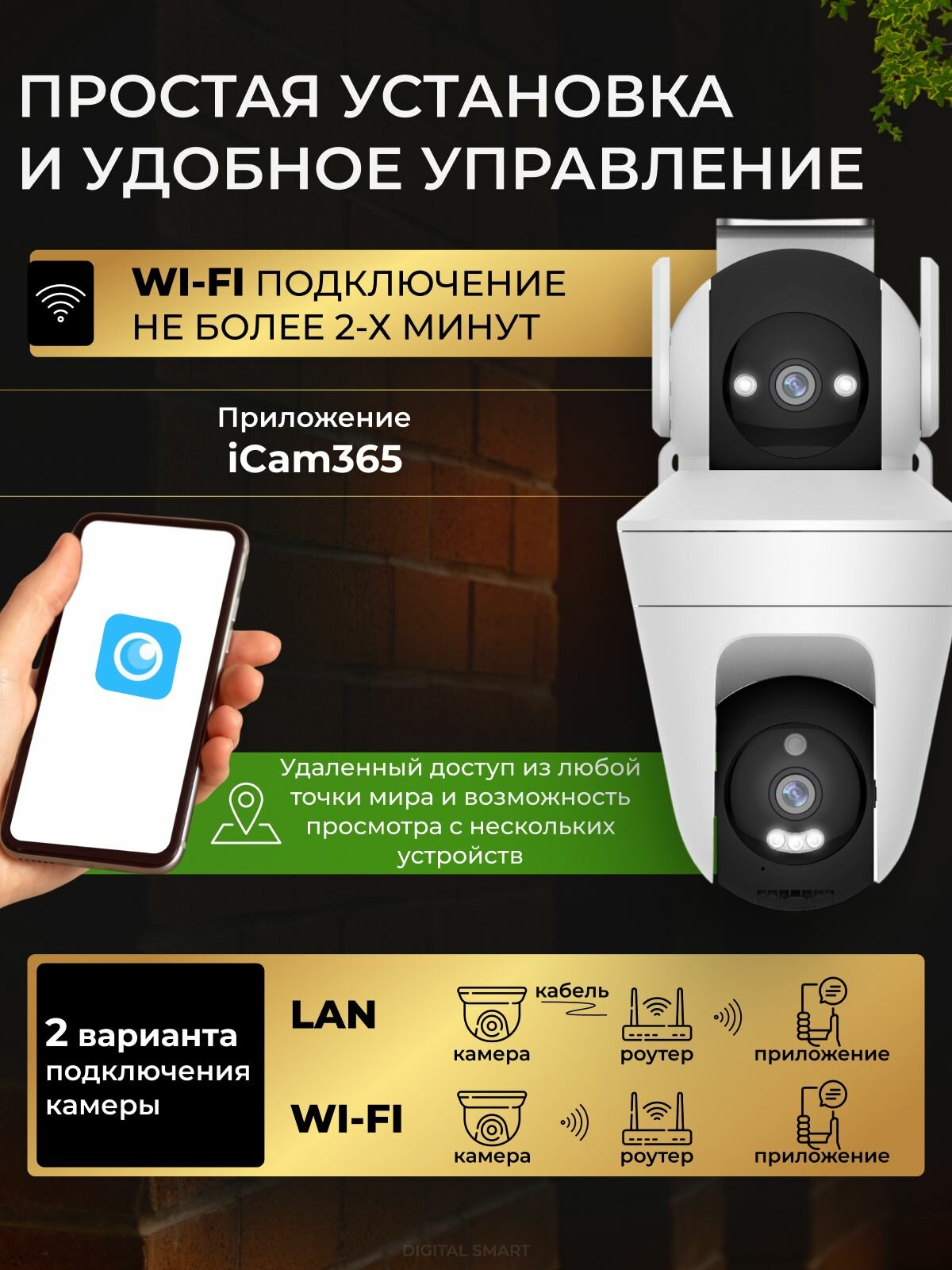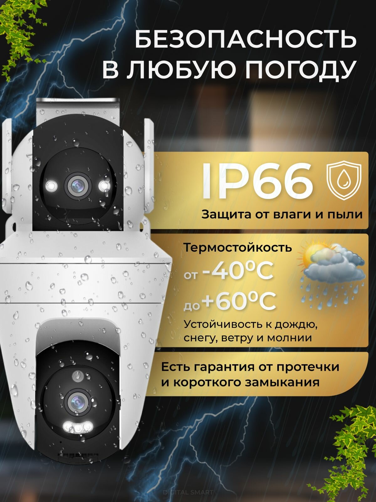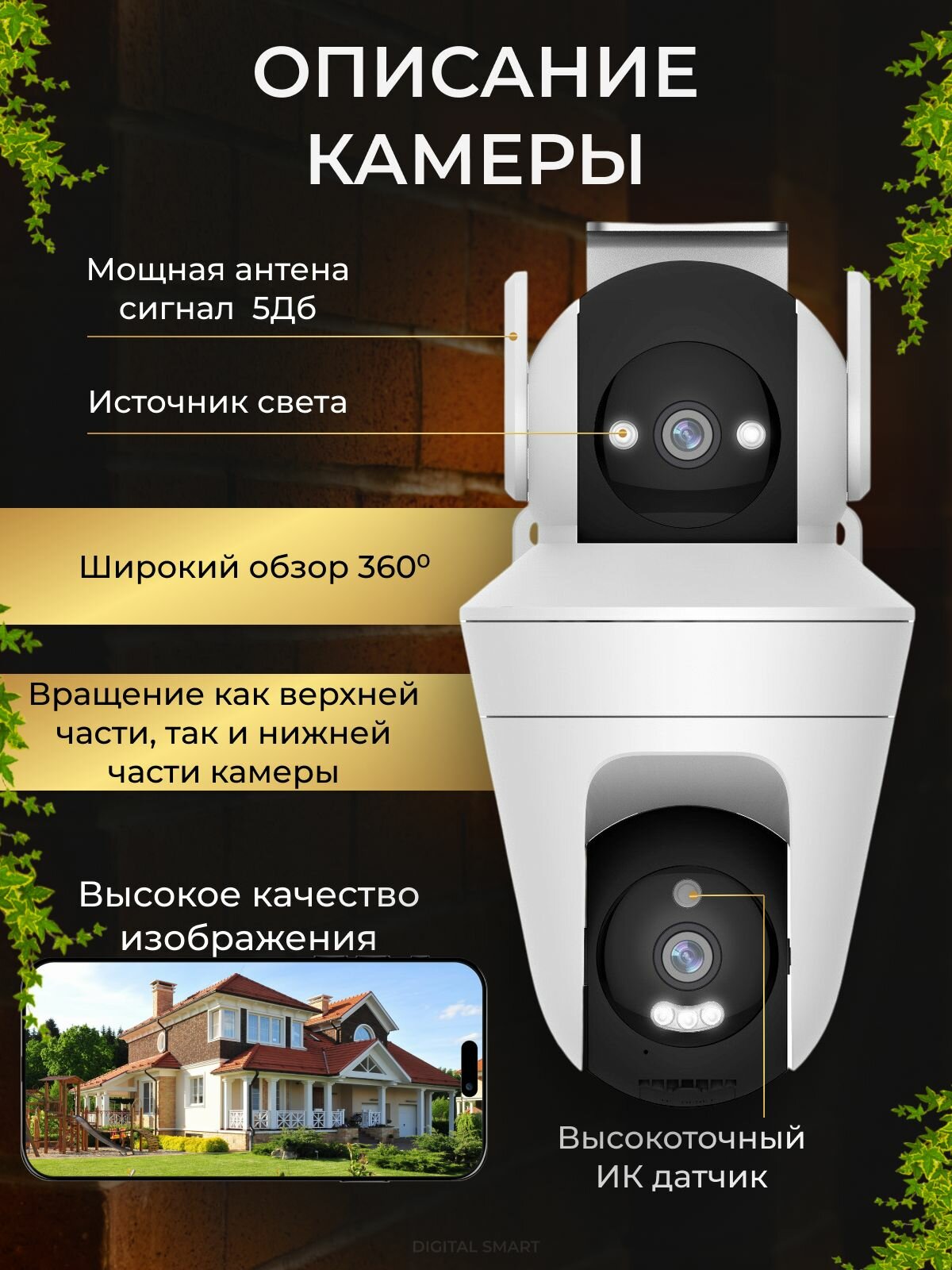 Камера видеонаблюдения уличная WiFi 10Мп, двойная, поворотная IP видеокамера с датчиком движения, режимом ночной съемки интересное: