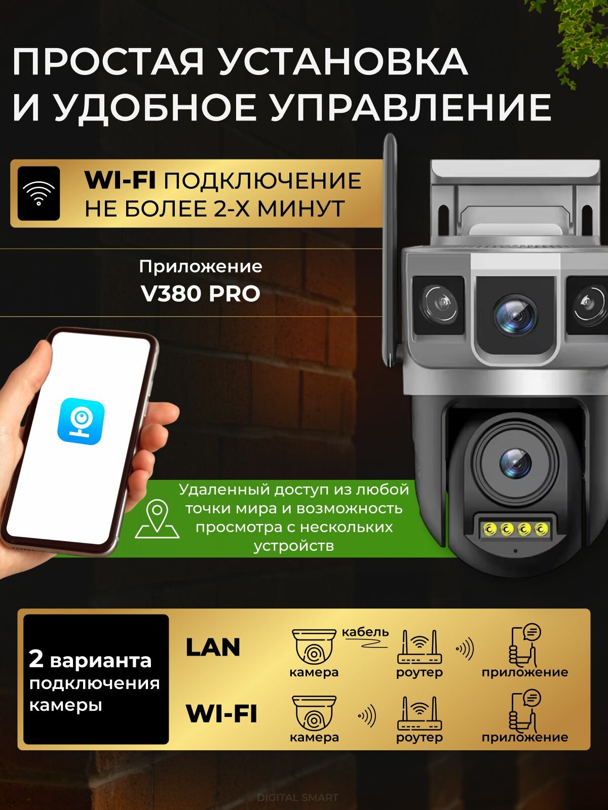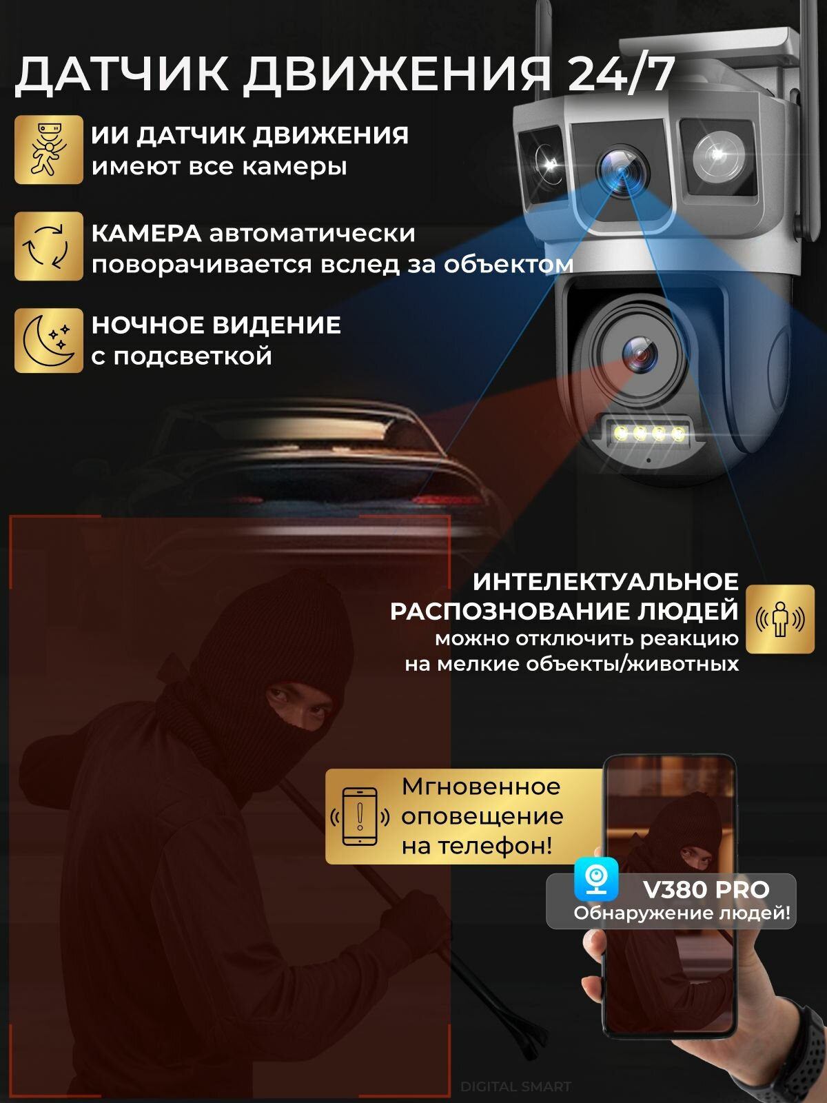 Камера видеонаблюдения уличная WiFi 10Мп, двойная, поворотная IP видеокамера с датчиком движения, режимом ночной съемки