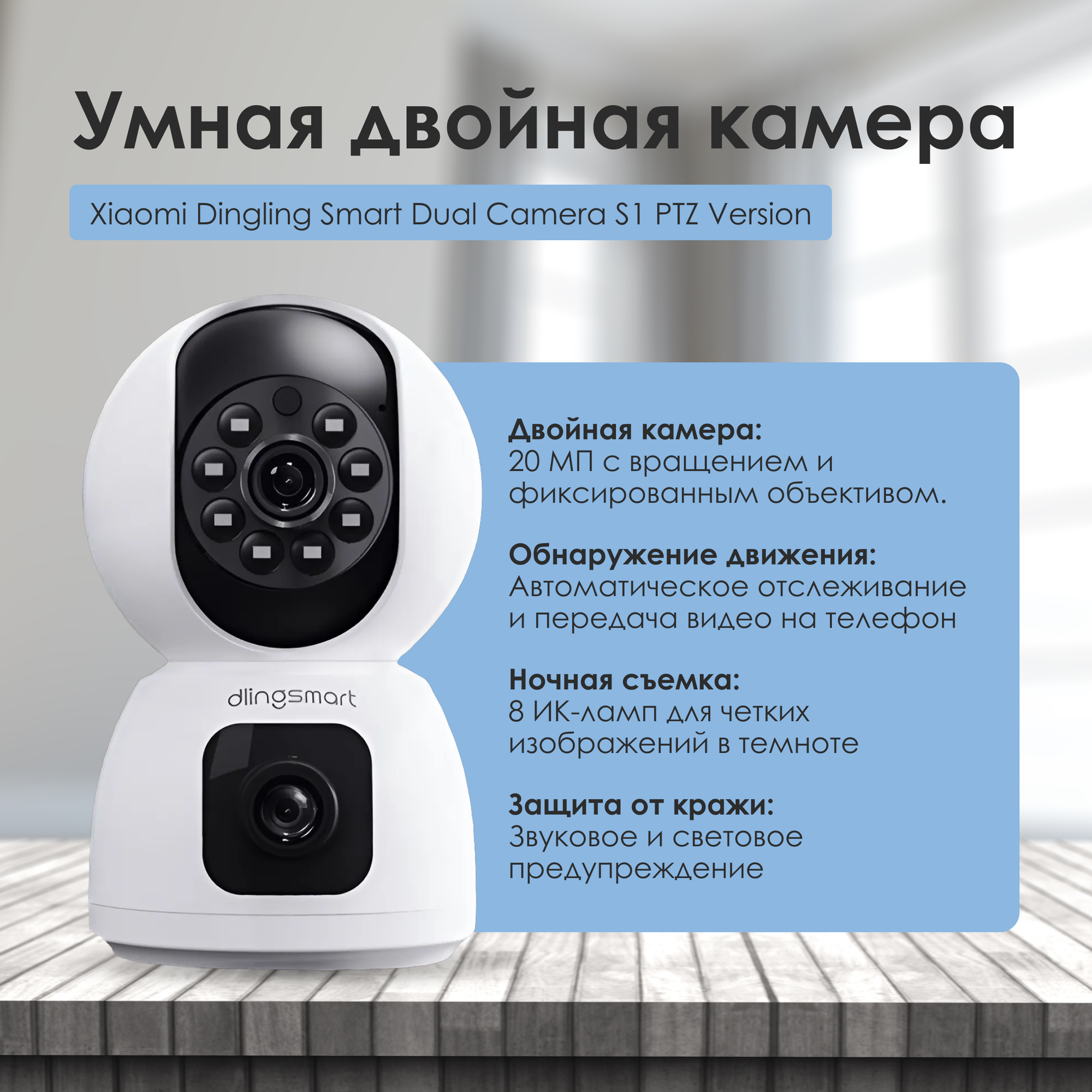 Умная двойная камера Xiaomi Dingling Smart Dual Camera S1 PTZ Version (FJ01DLCAM) версия CN (Китай) интересное: