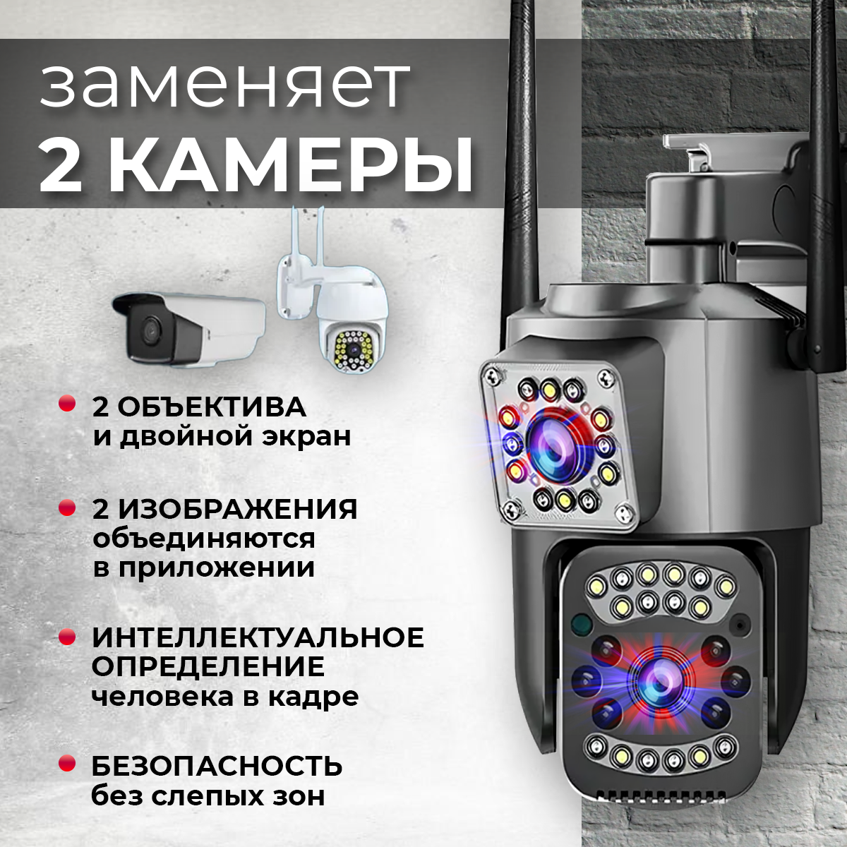 Купить Умная 4G камера, V380Pro,2 объектива,5МП, для дома и улицы, датчик движения, ночная съемка, поворотная