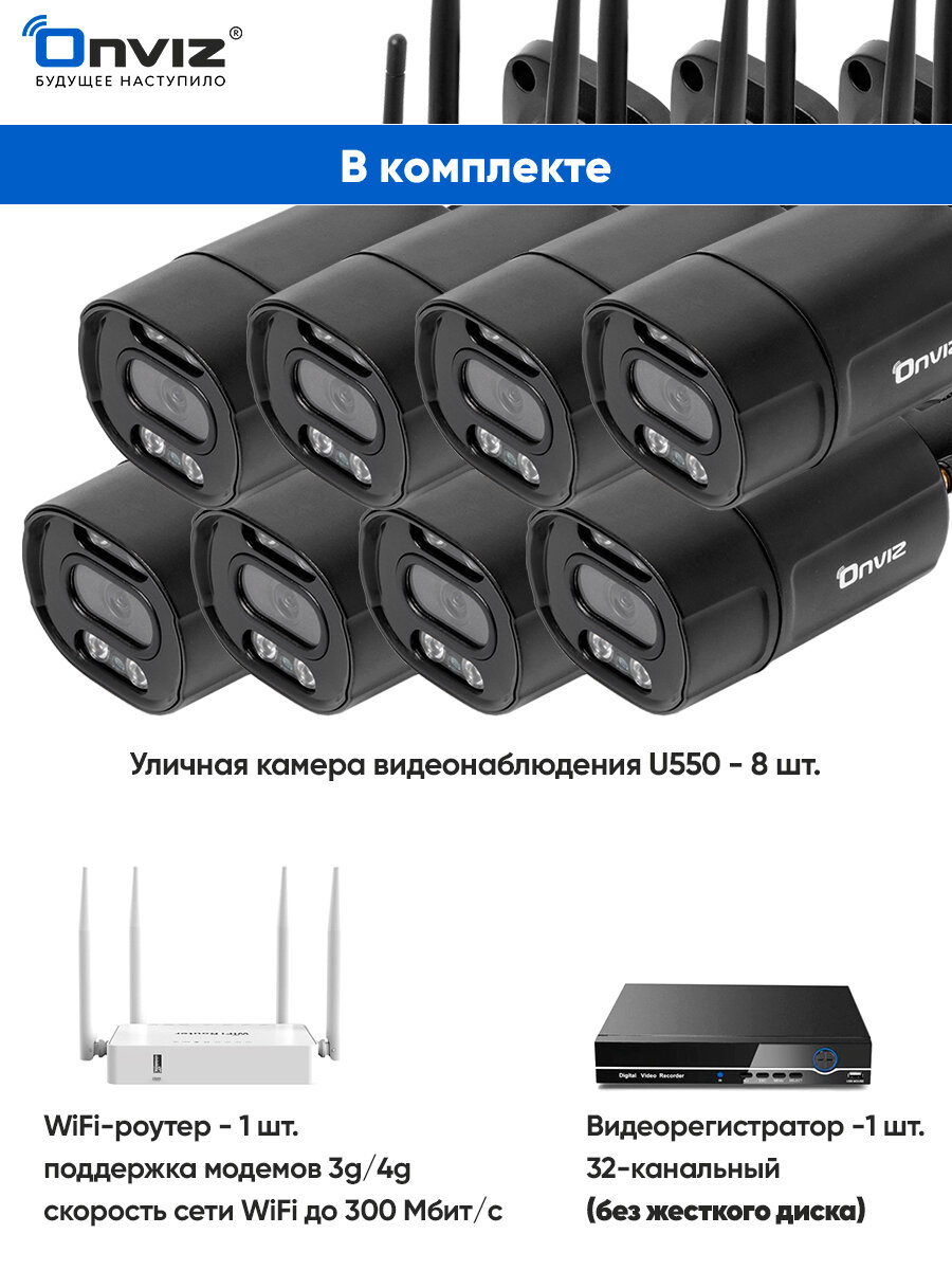 Купить Комплект 8 уличных беспроводных WiFi IP камер 5Мп видеонаблюдения OnvizU550 с детекцией человека, динамиком, микрофоном