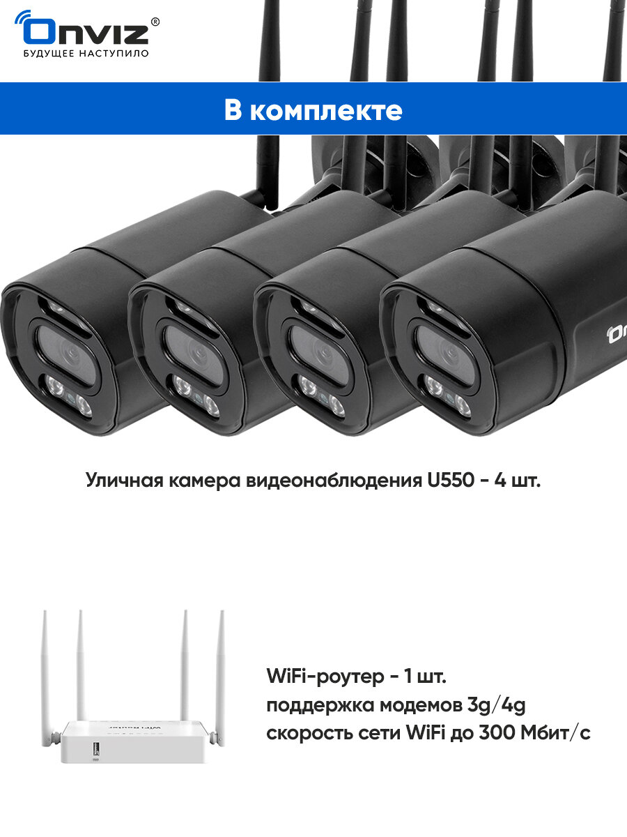 Купить Комплект 4 уличных беспроводных WiFi IP камер 5Мп видеонаблюдения OnvizU550 с детекцией человека, динамиком, микрофоном