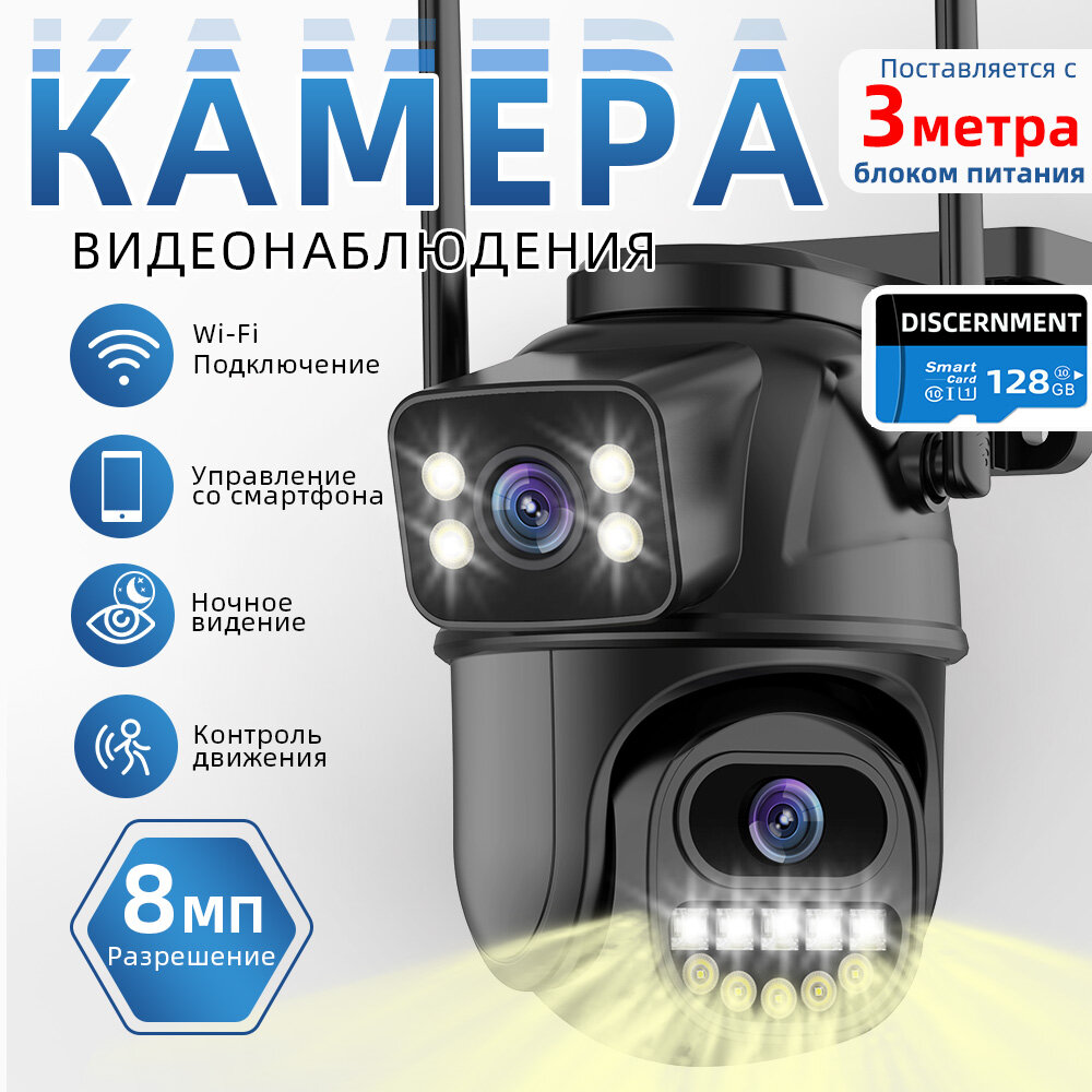 Купить 8Мп 4K наружная Wi-Fi PTZ-камера + 128 ГБ Карта памяти , микрофоном, автоматическим отслеживанием тревог, ONVIF, дистанционным управлением