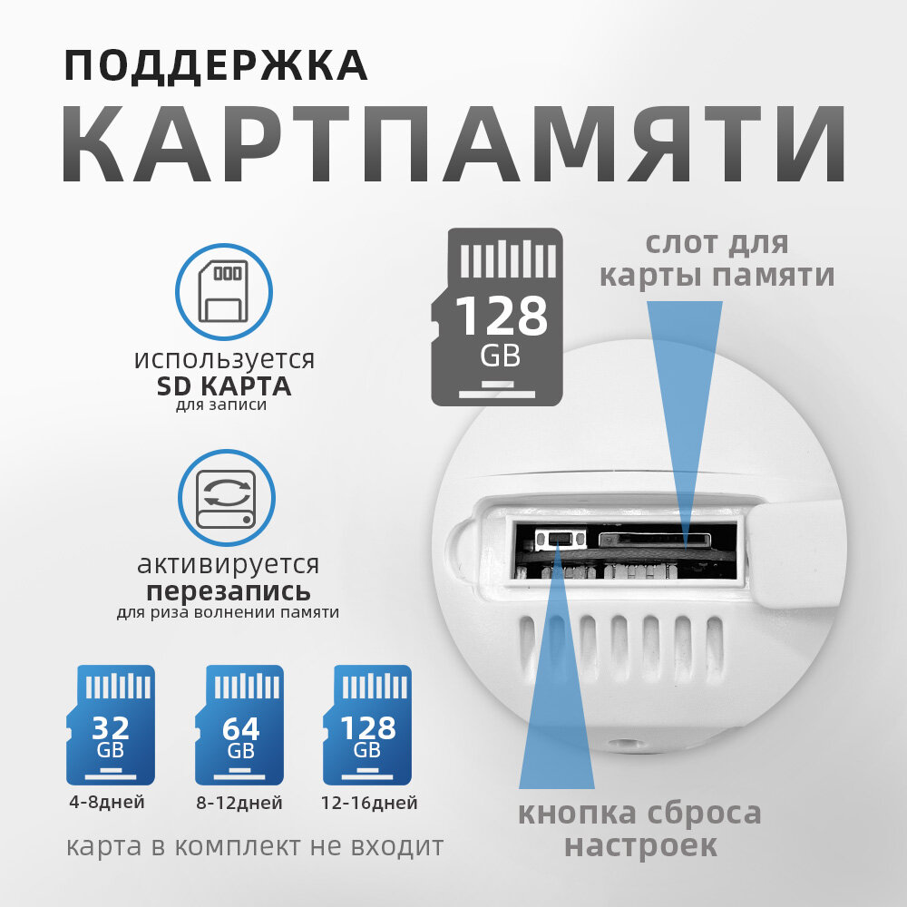 IP-камера видеонаблюдения Wi-Fi для дома с обзором 360 градусов белая