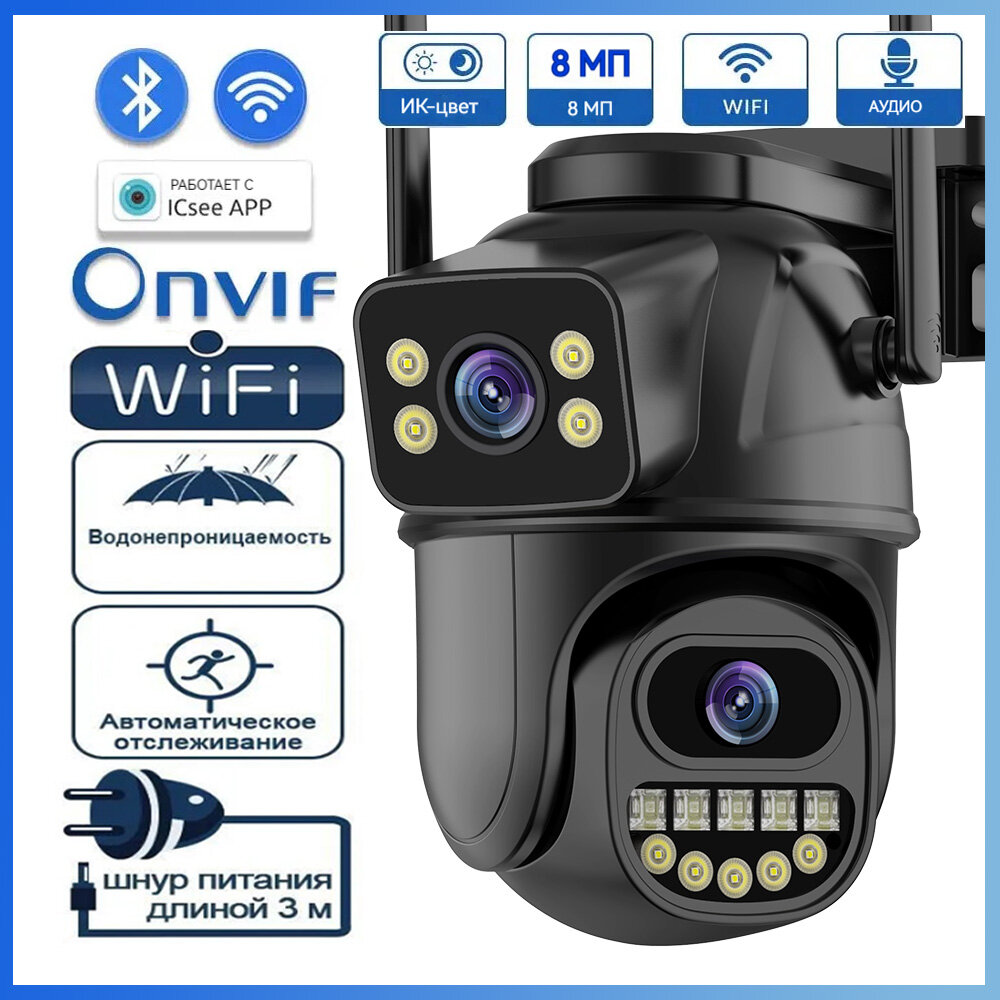 Купить 8Мп 4K наружная Wi-Fi PTZ-камера , микрофоном, автоматическим отслеживанием тревог, ONVIF, дистанционным управлением