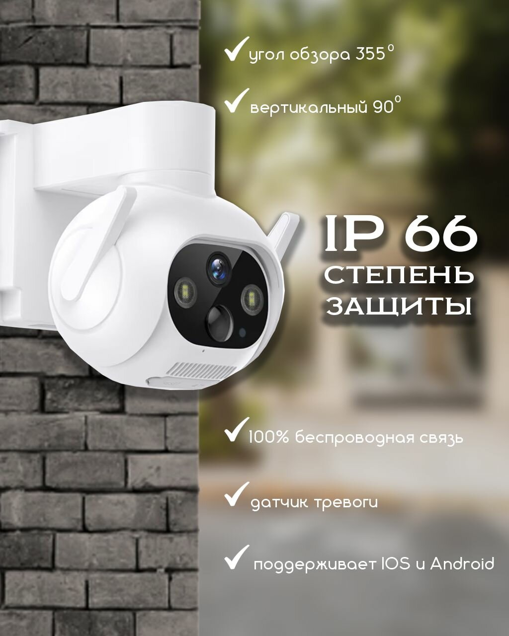 IP-камера видеонаблюдения Wi-Fi для дома с обзором 360 градусов белая