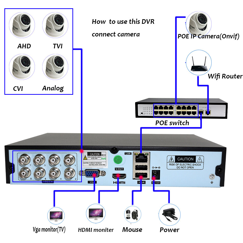Купить Гибридный видеорегистратор/NVR 8 каналов CCTV DVR, гибридный, P2P, поддержка AHD/CVI/TVI/IP/аналоговых камер