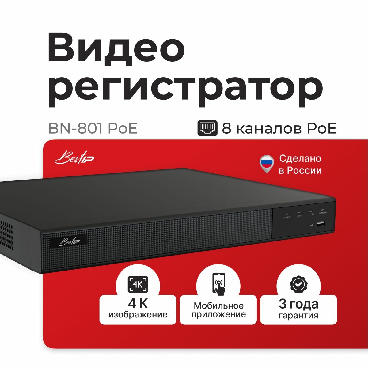IP видеорегистратор BestIP BN-801 POE, 8 Каналов POE, HDD до 8ТБ. Оригинал. интересное:
