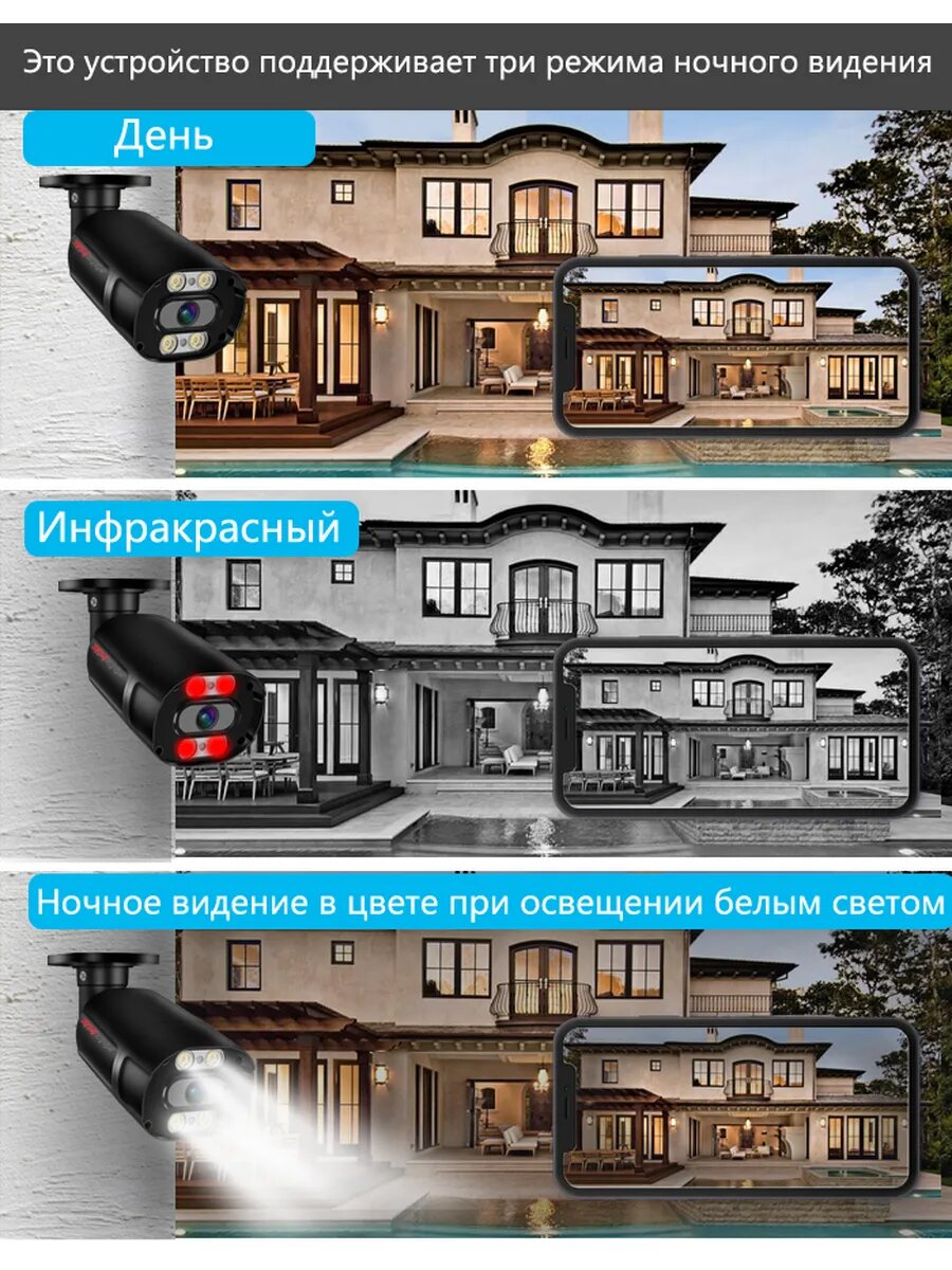 4K 8MP 4-камерный комплект: H.265, аудио+цветная ночь, IP66, PoE, двойная ИК-подсветка