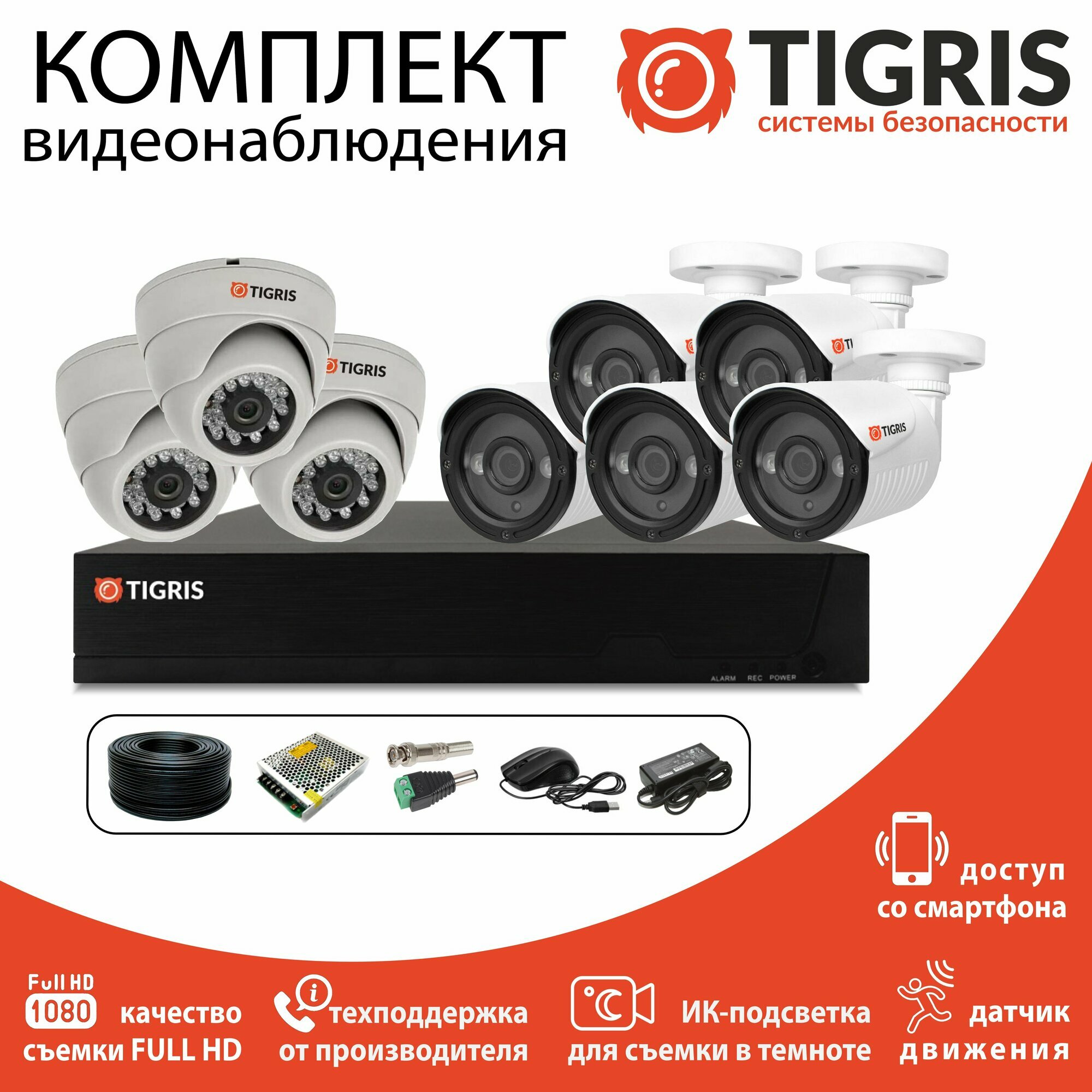 Готовый комплект видеонаблюдения FULL HD на 8 камер (5 уличных и 3 внутренних) интересное: