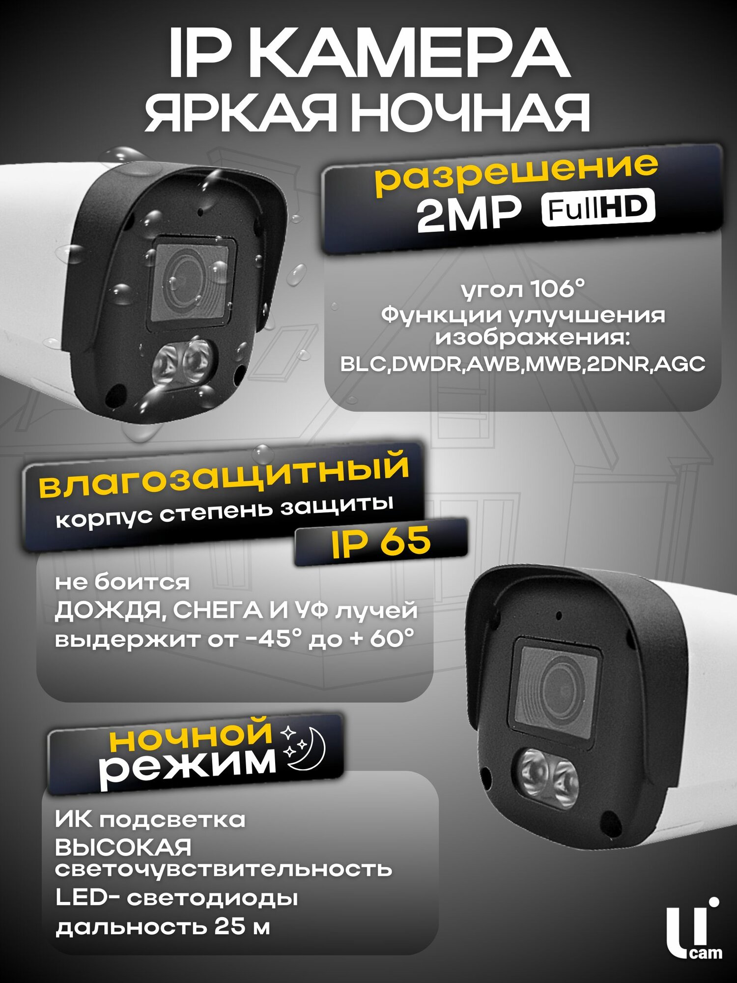 Комплект видеонаблюдения IP, 2 камеры 2Мп, Ucam