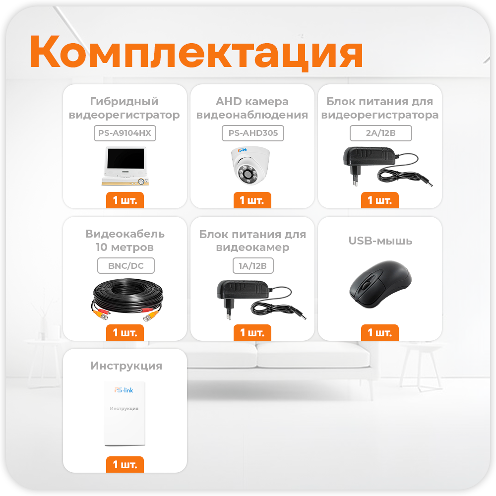 СохранитьКомплект видеонаблюдения с встроенным монитором PS-KIT-A9501HD 1 купольная AHD камера 5Мп, удаленный доступ, детекция движения интересное:
