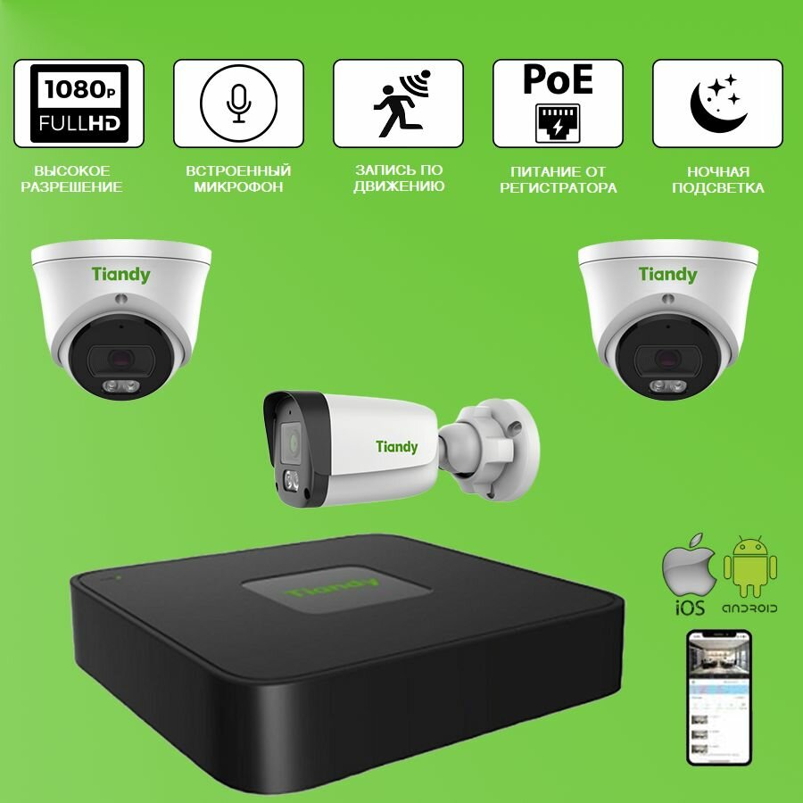 Комплект видеонаблюдения Tiandy для улицы/помещения 2Мп 2+1