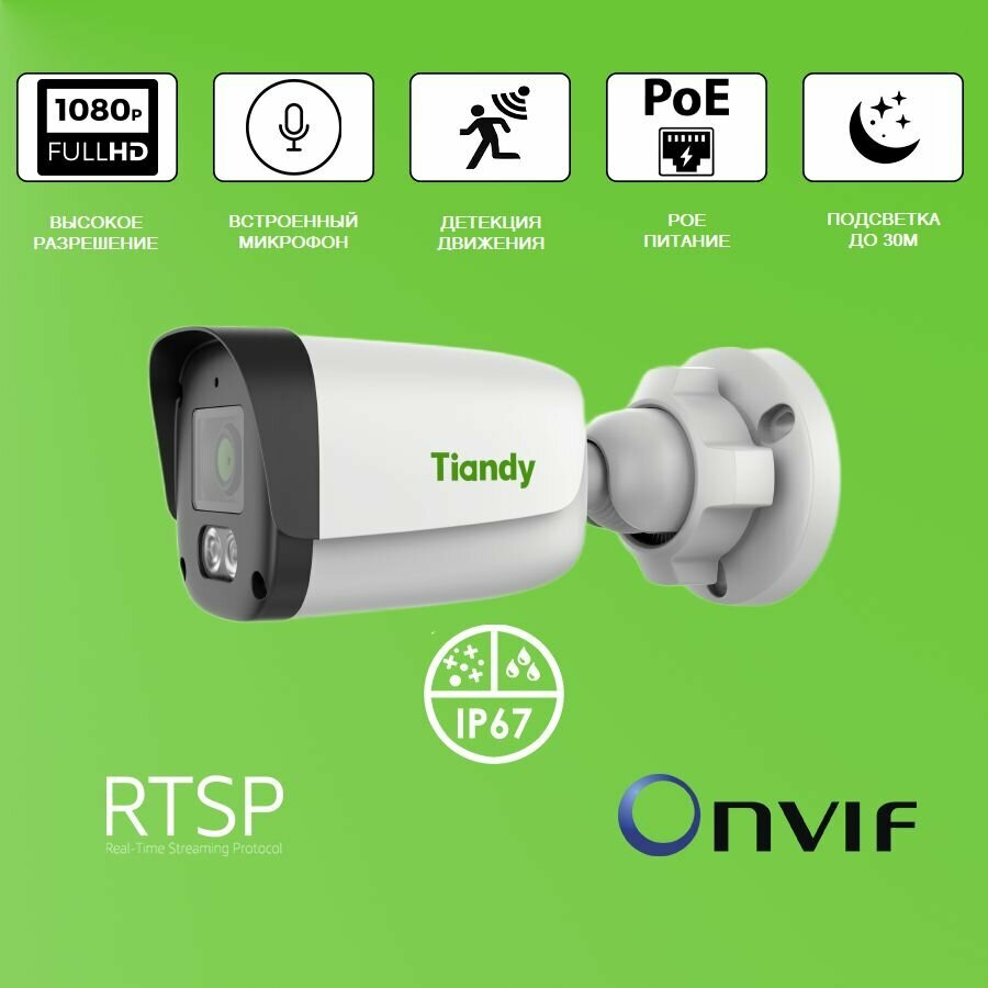 Комплект видеонаблюдения Tiandy для улицы/помещения 2Мп 1+2 интересное: