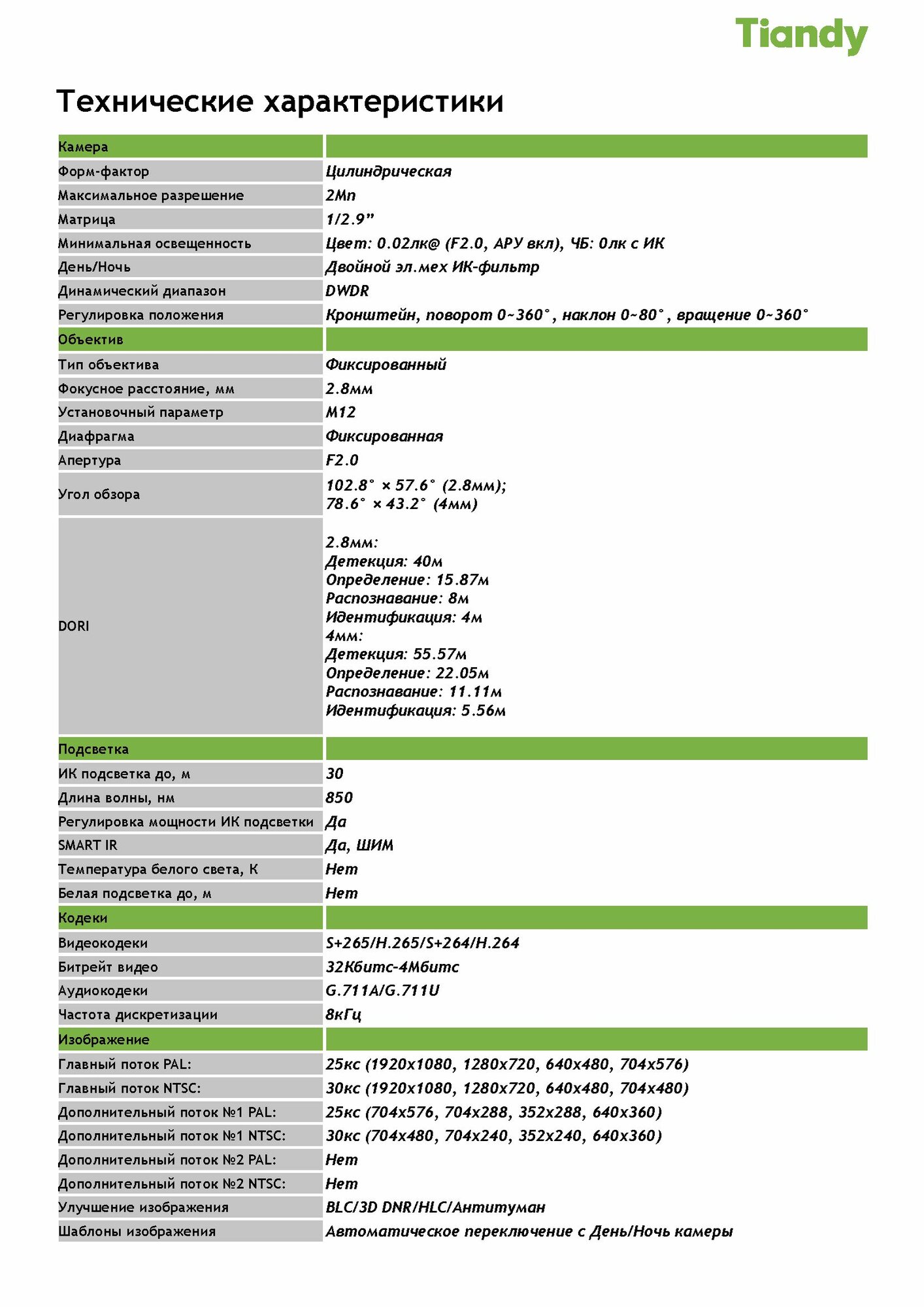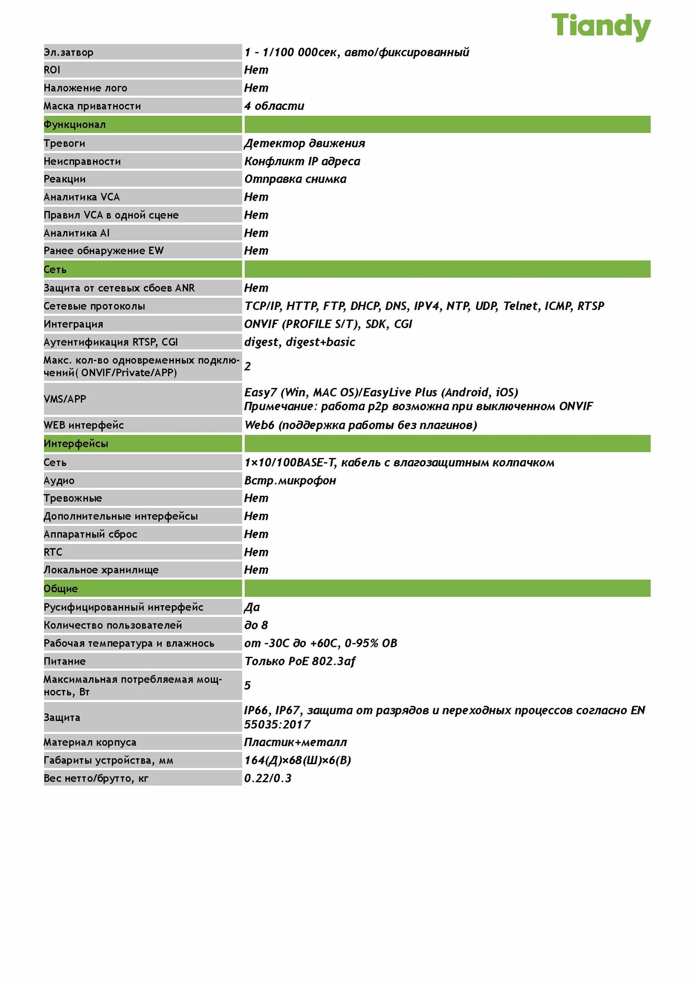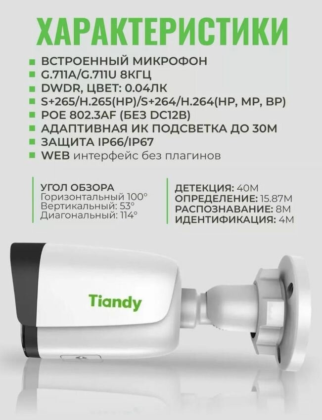 Комплект видеонаблюдения Tiandy для улицы/помещения 2Мп 3+1 интересное: