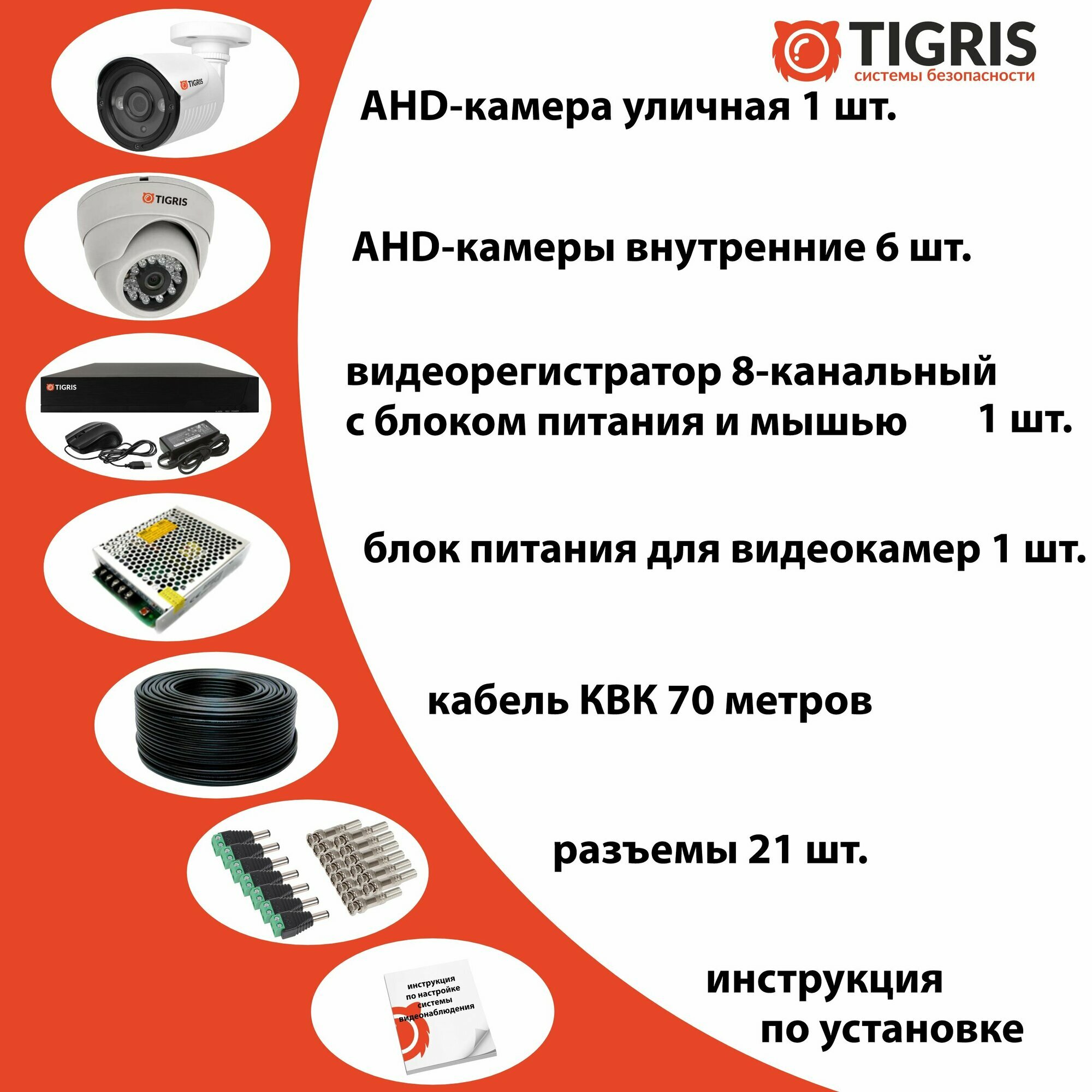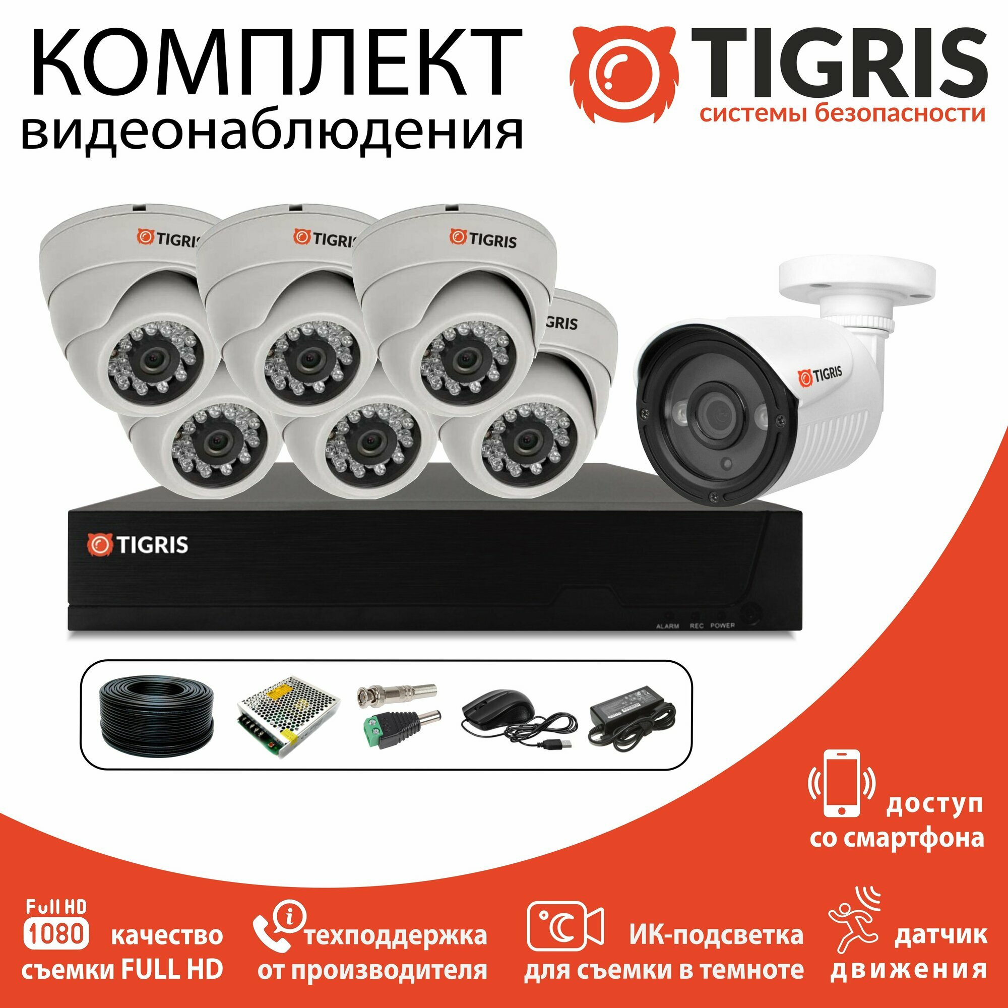 Готовый комплект видеонаблюдения FULL HD на 7 камер (1 уличная и 6 внутренних) интересное: