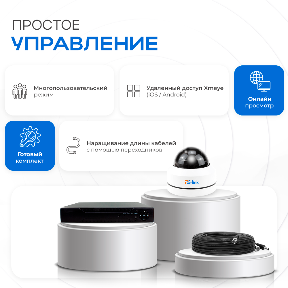 Комплект видеонаблюдения PS-link RTB204HD 2МП с четырьмя поворотными камерами интересное: