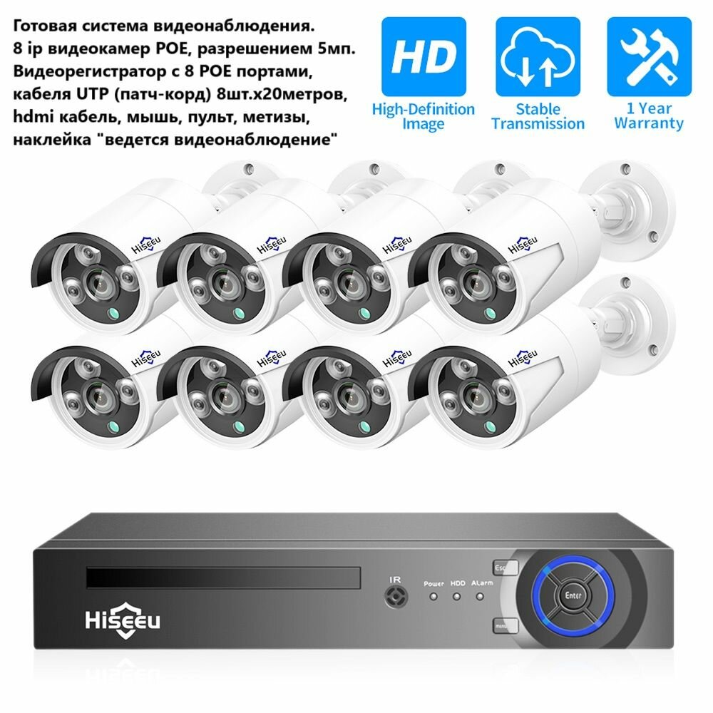 Комплект видеонаблюдения уличный 8 IP камер 5МП. POE+ видеорегистратор с POE 8 портов интересное: