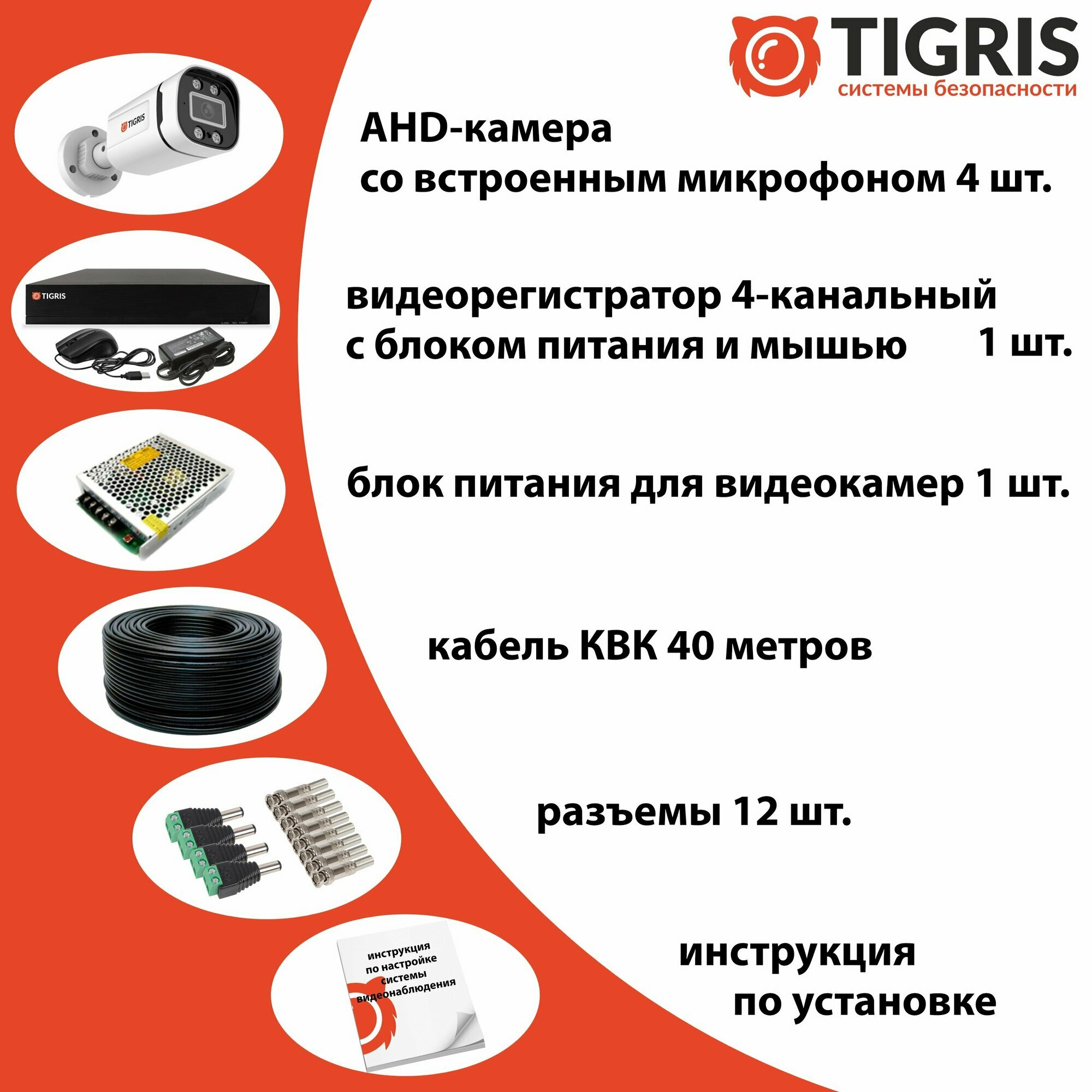 Готовый комплект видеонаблюдения FULL HD на 4 уличные камеры с микрофоном интересное: