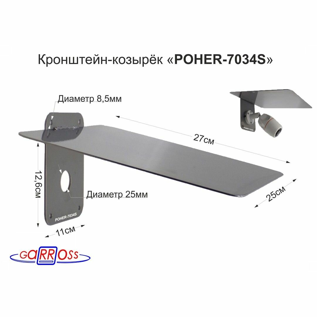 Кронштейн-козырёк "POHER-7034S-83526" для защиты камеры от дождя, льда, солнца, прочная сталь 2мм, серебристый интересное: