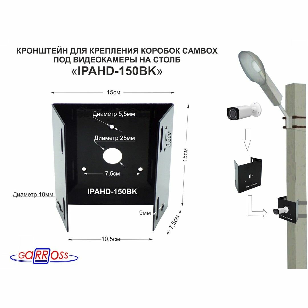 Кронштейн для крепления видеокамеры на столб "MAIMA-129485" подходит для гермо-коробки CAMBOX, цвет чёрный интересное: