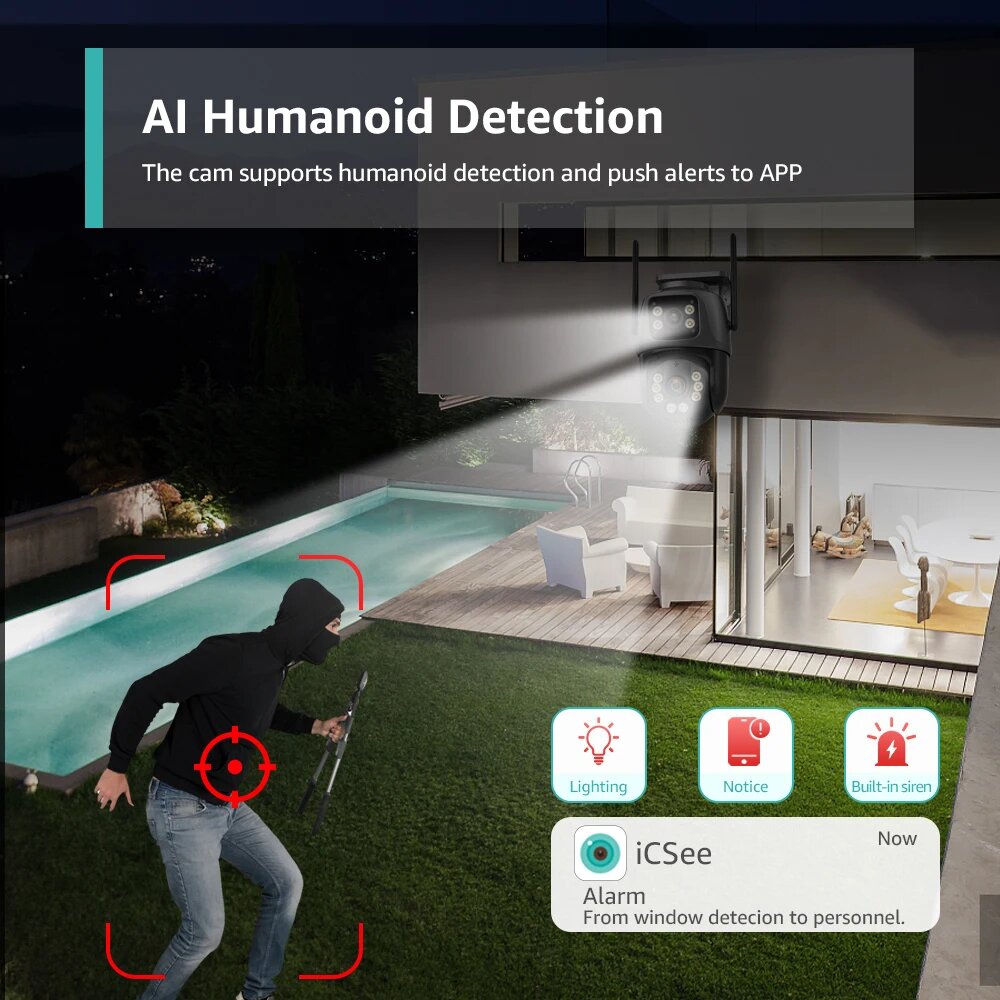 Wi-Fi камера для улицы, 8 МП, PTZ, обнаружение человека, цвет, ночное видение, защита безопасности, интересное: